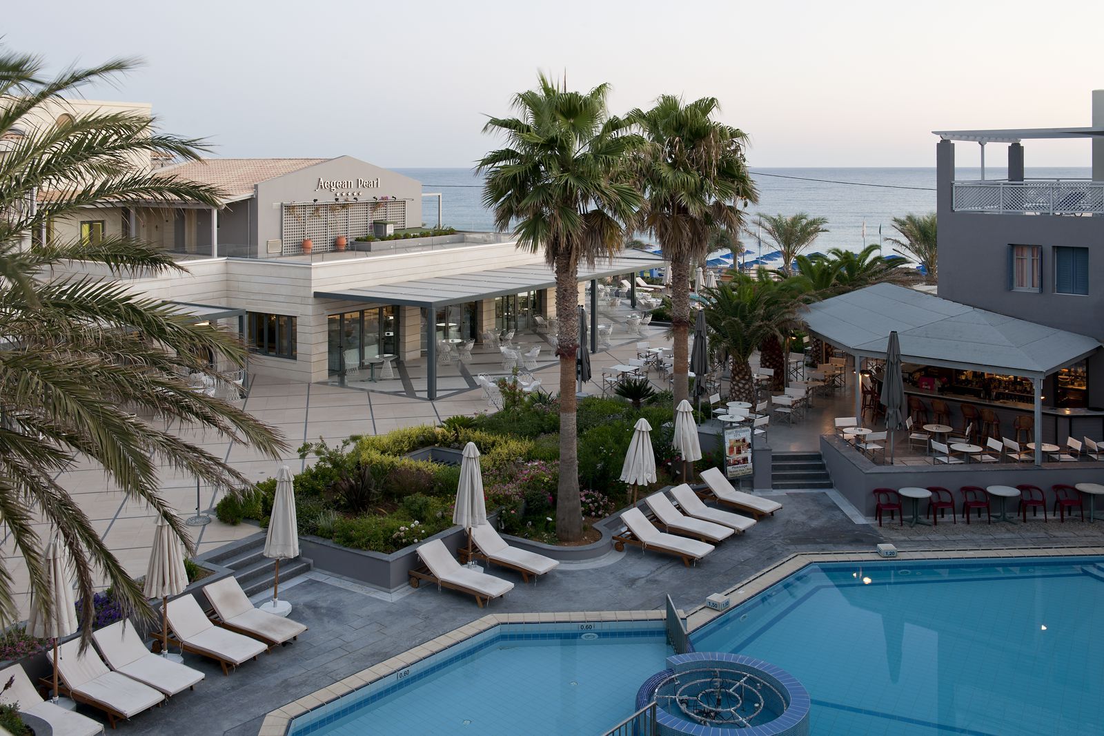 Luxe, ontspanning en plezier. Met een verblijf in het prachtige 5-sterrenhotel Aegean Pearl is dit in drie woorden een hele korte samenvatting van jouw waanzinnige zonvakantie op het veelzijdige Griekse eiland Kreta. De perfecte ligging op hele korte afstand van het privéstrand zorgt ervoor dat je elke dag opnieuw voor een issue staat: ga je voor een ligbedje aan het mooie zwembad of op het fijne strand? Waar je keuze ook op valt, kies een mooi plekje, bestel en verfrissend drankje aan de bar, smeer je goed in en genieten maar! De dag begint in Aegean Pearl altijd goed, want je kunt zo aanschuiven bij het smakelijk ontbijtbuffet. De rest van de dag vul je naar wens in. Wat denk je van een heerlijke behandeling in het Spa Center, dwalen door het gezellige centrum van het nabij gelegen Rethymnon of meedoen aan een sportief lesje aerobics? Ook voor de kleintjes is er genoeg vertier in het fijne kinderzwembad. ’s Avonds geniet je van een heerlijk diner in buffetvorm waarna je kunt opladen in je comfortabele (familie)kamer of suite. Aegean Pearl biedt je alles wat je van een 5-sterrenhotel onder de Griekse zon mag verwachten! TIP: boek deze vakantie als Fly & Go Gemak voorop: pakketreis met vlucht + deze accommodatie + huurauto De verzekering voor je auto is geregeld Vrijheid en avontuur: ontdek in je eigen tempo je vakantiebestemming Bekijk deze Fly & Go vakantie Zomer Wanneer je tussen 01-05-2026 en 15-10-2026 in deze accommodatie verblijft, is onderstaande informatie van toepassing. Ligging Privéstrand Weg tussen het strand en de accommodatie Ligbedden Parasol Centrum van Rethymnon op circa 2 kilometer Dichtstbijzijnde winkel op circa 100 meter Dichtstbijzijnde restaurant op circa 50 meter Dichtstbijzijnde bar op circa 50 meter Bushalte op circa 150 meter Algemeen & faciliteiten 2 gebouwen Maximaal 3 verdiepingen 112 kamers Receptie 24 uur per dag Lobby 2 liften Lift in elk gebouw Bagageruimte Wifi in alle openbare ruimtes Winkel Wasservice tegen betaling Doktersservice tegen betaling op aanvraag Tuin Openbare parkeergelegenheid Privé parkeergelegenheid met borg Restaurants & bars Buffetrestaurant À-la-carterestaurant tegen bijbetaling Grieks restaurant Snackbar tegen betaling Roomservice tegen betaling 2 drinkgelegenheden Lobbybar Poolbar Activiteiten & ontspanning Aerobics Duikcentrum tegen betaling Fitness Tafeltennis Yoga Spa Center Sauna tegen betaling Hamam tegen betaling Bubbelbad binnen Massages tegen betaling Schoonheidsbehandelingen tegen betaling Animatie voor volwassenen 6 keer per week Shows Livemuziek Zwembaden 2 buitenzwembaden Buitenzwembad voor kinderen Binnenzwembad Zonneterras Ligbedden met matrasjes Parasol Badhanddoekenservice Kinderfaciliteiten Babybedje op aanvraag via ons contact center Babysitservice tegen betaling ter plaatse op aanvraag Verzorging Halfpension Ontbijt in buffetvorm Diner in buffetvorm Volpension Ontbijt in buffetvorm Lunch à la carte Diner in buffetvorm Hotelkamers 1-persoonskamer Standaard EZ Oppervlakte circa 24 m² Airconditioning Kluisje Televisie Telefoon tegen betaling Eet- en drinkfaciliteiten Koffie- en theefaciliteiten Minibar Bij aankomst gevuld met water Badkamer bad of douche, toilet, föhn, badjassen en badslippers Wifi Balkon of terras (zitje) 2-persoonskamer Standaard DZ Oppervlakte circa 24 m² Airconditioning Kluisje Televisie Telefoon tegen betaling Eet- en drinkfaciliteiten Koffie- en theefaciliteiten Minibar Bij aankomst gevuld met water Badkamer bad of douche, toilet, föhn, badjassen en badslippers Wifi Balkon of terras (zitje) 2-persoonskamer Standaard Zijzeezicht DZI Oppervlakte circa 24 m² Zijzeezicht Airconditioning Kluisje Televisie Telefoon tegen betaling Eet- en drinkfaciliteiten Koffie- en theefaciliteiten Minibar Bij aankomst gevuld met water Badkamer bad of douche, toilet, föhn, badjassen en badslippers Wifi Balkon of terras 2-persoonskamer Superior DS1 Familiekamer Standaard FZ Oppervlakte circa 48 m² In maisonettestijl 2 slaapkamers Airconditioning Kluisje Televisie Telefoon tegen betaling Eet- en drinkfaciliteiten Koffie- en theefaciliteiten Minibar Bij aankomst gevuld met water Badkamer bad of douche, toilet, föhn, badjassen en badslippers Wifi Balkon of terras (zitje) Familiekamer Standaard Zeezicht FZM Oppervlakte circa 48 m² Zeezicht In maisonettestijl 2 slaapkamers Airconditioning Kluisje Televisie Telefoon tegen betaling Eet- en drinkfaciliteiten Koffie- en theefaciliteiten Minibar Bij aankomst gevuld met water Badkamer bad of douche, toilet, föhn, badjassen en badslippers Wifi Balkon of terras (zitje) Suite Premium Zeezicht URM