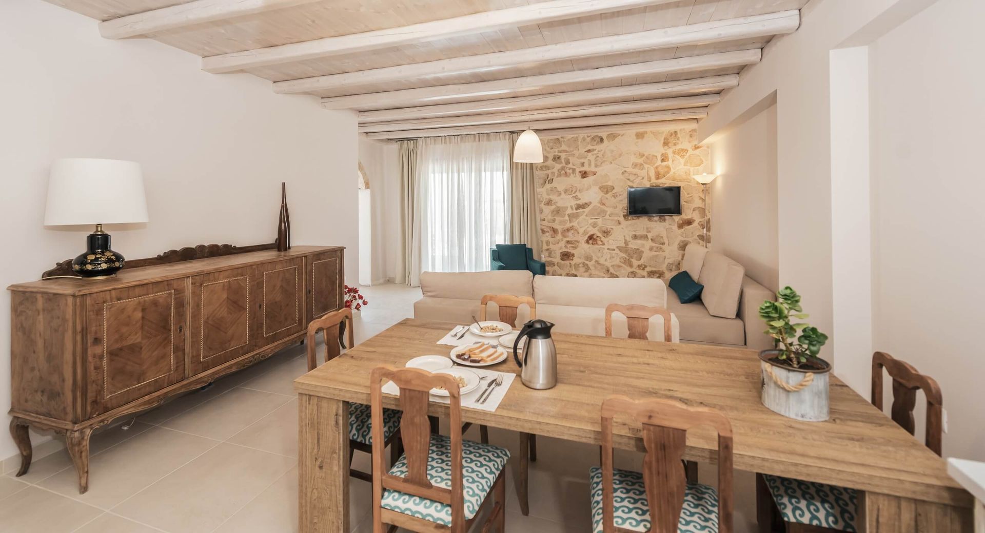 Agrikia Villa is located in the area of Lagadakia on the beautiful island of Zakynthos. The town of Zakynthos lies 11.7km away and the resort of Laganas is at a distance of 10.7km. The nearest airport is Zakynthos airport 12.1km away from the property. Welcome to Agrikia! The natural materials of stone, wood and iron offer the unique atmosphere and feeling of the authentic Greek villages.The friendly owners have taken great care and consideration when constructing these stone residencies, equipping them with everything you may need for a relaxing break away from home, such as high-standard furniture, decor and style. The best part of Agrikia is the forest surrounding it, where the guests can enjoy long walks in nature! The ultimate traditional Breakfast made with fresh products of our family land and local producers. Enjoy in your apartment or deck while enjoying the view and natural surroundings. Facilities & Services: Swimming Pool, Sea Views, Washing Machine, Microwave, Coffee Maker, Hair Dryer, Linen change twice a week, Sun Loungers & Parasols, Fully Equipped Kitchen, Iron/Ironing Board, Safety Deposit Box, Private Parking, Free Wi-Fi, Landscaped Gardens, Fridge, Beach Towels, Satellite TV, Communal BBQ, 24hrs Hot Water, Daily Maid Service The apartments are suitable for families, couples or groups of friends. Due to their remote location, they are the perfect getaway for stress-free relaxing holidays, offering natural surroundings and great scenery! Facilities: Welcome Gift Upon Arrival, Bathroom with Shower, Closet, Coffee Facilities, Daily Maid Service, Dining Table, Free Wi-Fi Internet Access, Fridge, Hairdryer, Individually Controlled Air Condition, Iron & Ironing Board, Kitchen, Living Room, Modern Furnishing, Private Balcony or Terrace, Safety Deposit Box, Satellite TV, Sitting Area