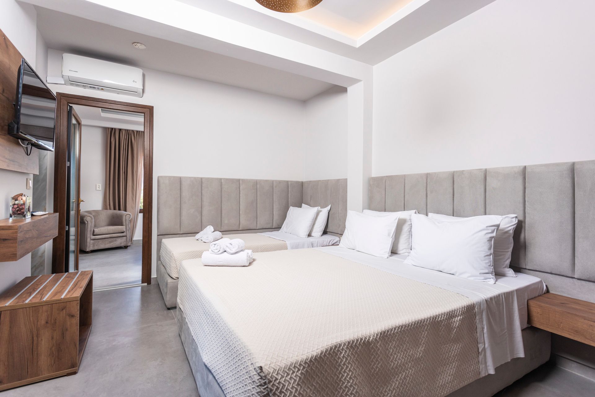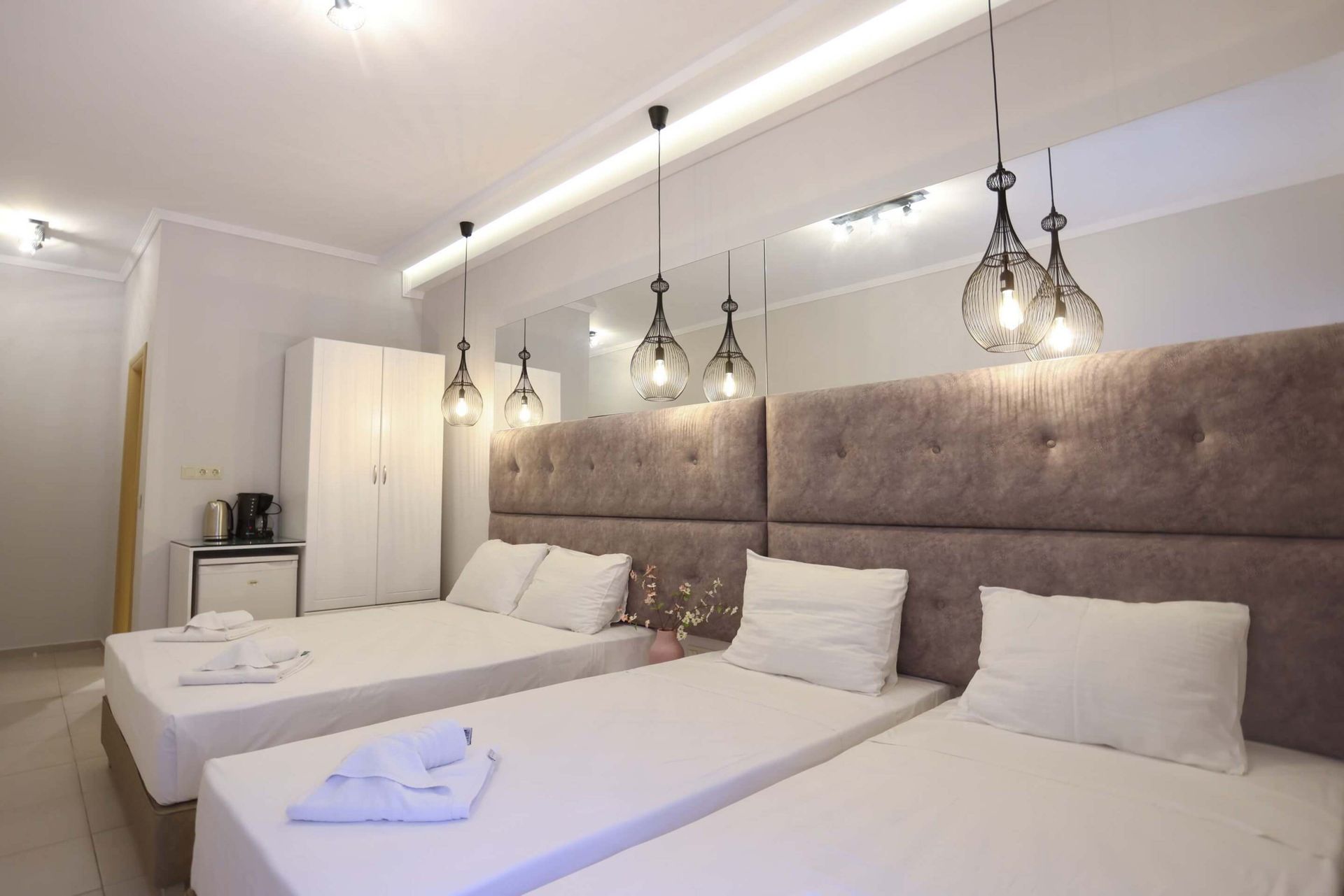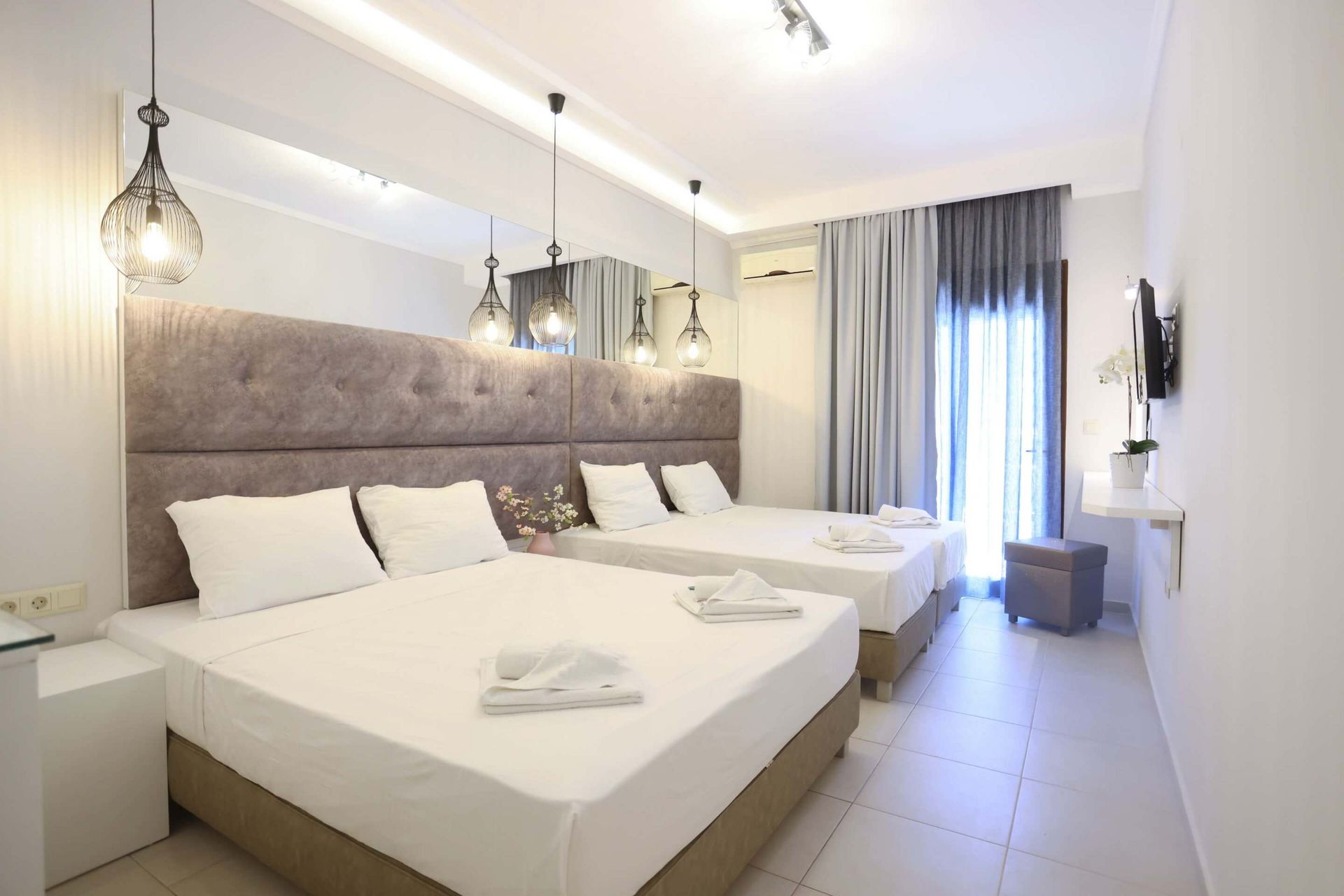 Algemene beschrijving:Dit resort hotel Anna Maria Paradise bevindt zich ca. 200 m van een zand-/kiezelstrand. Op het strand staan ligstoelen en parasols tegen betaling gereed. De stad Hanioti ligt op ongeveer 2 km afstand (Afytos ongeveer 21 km, Kassandria ongeveer 25 km). Een supermarkt is na ongeveer 900 m bereikbaar. In de omgeving van het Anna Maria Paradise bereikt u verschillene bars en restaurants (1 km). Een bushalte (ca. 100 m) zorgt voor mobiliteit op vakantie. Voor medische zorg in geval van nood vindt u een ziekenhuis na ongeveer 65 km. De luchthaven (SKG) is ongeveer 95 km van het hotel vandaan. Faciliteiten:Dit één verdieping tellende hotel beschikt over in totaal 58 kamers. Daarnaast beschikt het hotel ook over een receptie (check in vanaf 14:00 uur, uitchecken tot 11:00 uur), een lobby met bar, airconditioning, een kluisje (tegen betaling) evenals een parkeerplaats (gratis). Het gastronomisch gedeelte omvat twee restaurants (airconditioned). De hotelbar biedt gasten verfrissende drankjes in een gezellige atmosfeer. De hotelgasten kunnen gratis gebruik maken van Wifi. Voor gasten die afhankelijk zijn van een rolstoel biedt het hotel barrièrevrije toegangen. Zwembad:Buiten bevindt zich een zoetwater zwembad met een kinderbad. Hier zijn ligstoelen en parasols gratis beschikbaar. Een bar bij het zwembad biedt gasten verfrissende drankjes (geopend van 11:00 - 00:00 uur). Verzorging:Ontbijt (08:00 - 10:00 uur) in buffetvorm. Halfpension omvat ontbijt en diner. Sport/Activiteiten:Entertainment voor volwassenen: avondshows en livemuziek. Aanvullende informatie:Voor bepaalde faciliteiten, voorzieningen of activiteiten kunnen extra kosten in rekening worden gebracht. Sommige diensten zijn afhankelijk van de plaatselijke klimatologische omstandigheden en van het seizoen. Het hotelpersoneel spreekt Grieks, Nederlands, Duits en Engels. Geaccepteerde betalingsmiddelen: Visa en Euro/MasterCard. 2 SlaapKamers Deluxe Bungalow:Voorzien van tweepersoonsbed, babybedje (gratis), waterverhitter (gratis), internet (gratis), kluisje (tegen betaling) en sat-tv, individueel verstelbare airco. Badkamer met douche. Grootte: 40 m². Superior FamilieKamer:Uitgerust met 2 eenpersoonsbedden of tweepersoonsbed, babybedje (gratis), balkon, waterverhitter (gratis), internet (gratis), kluisje (tegen betaling) en sat-tv, individueel verstelbare airco. Badkamer met douche. Grootte: 28 m². 2 SlaapKamers FamilieSuite:Uitgerust met tweepersoonsbed en babybedje (gratis). Grootte: 38 m². 2 SlaapKamers Premium Superior FamilieSuite (Zee zicht):Uitgerust met queensizebed, 2 eenpersoonsbedden of tweepersoonsbed, babybedje (gratis), balkon, waterverhitter (gratis), internet (gratis), kluisje (tegen betaling) en sat-tv, individueel verstelbare airco. Badkamer met douche. 2 SlaapKamers Superior FamilieSuite (Zee zicht):Uitgerust met 2 eenpersoonsbedden of tweepersoonsbed, babybedje (gratis), waterverhitter (gratis), internet (gratis), kluisje (tegen betaling) en sat-tv, individueel verstelbare airco. Badkamer met douche. Grootte: 38 m². Maisonette (Zee zicht):Voorzien van 2 eenpersoonsbedden of tweepersoonsbed, slaapbank als extra bed, extra bed, babybedje (gratis) en balkon. Grootte: 40 m². Dubbel Deluxe Kamer (TuinZicht):Voorzien van kingsizebed, 2 eenpersoonsbedden of tweepersoonsbed, slaapbank als extra bed, extra bed, babybedje (gratis), balkon, waterverhitter (gratis), internet (gratis), kluisje (tegen betaling) en sat-tv, individueel verstelbare airco. Badkamer met douche. Grootte: 28 m². Dubbel Superior Kamer (TuinZicht):Uitgerust met 2 eenpersoonsbedden of tweepersoonsbed, babybedje (gratis), balkon, waterverhitter (gratis), internet (gratis), kluisje (tegen betaling) en sat-tv, individueel verstelbare airco. Badkamer met douche. Grootte: 20 m². DriePersoons Superior Kamer:Voorzien van 2 eenpersoonsbedden of tweepersoonsbed, slaapbank als extra bed, extra bed, babybedje (gratis), balkon of terras, waterverhitter (gratis), internet (gratis), kluisje (tegen betaling) en sat-tv, individueel verstelbare airco. Badkamer met douche. Grootte: 24 m².