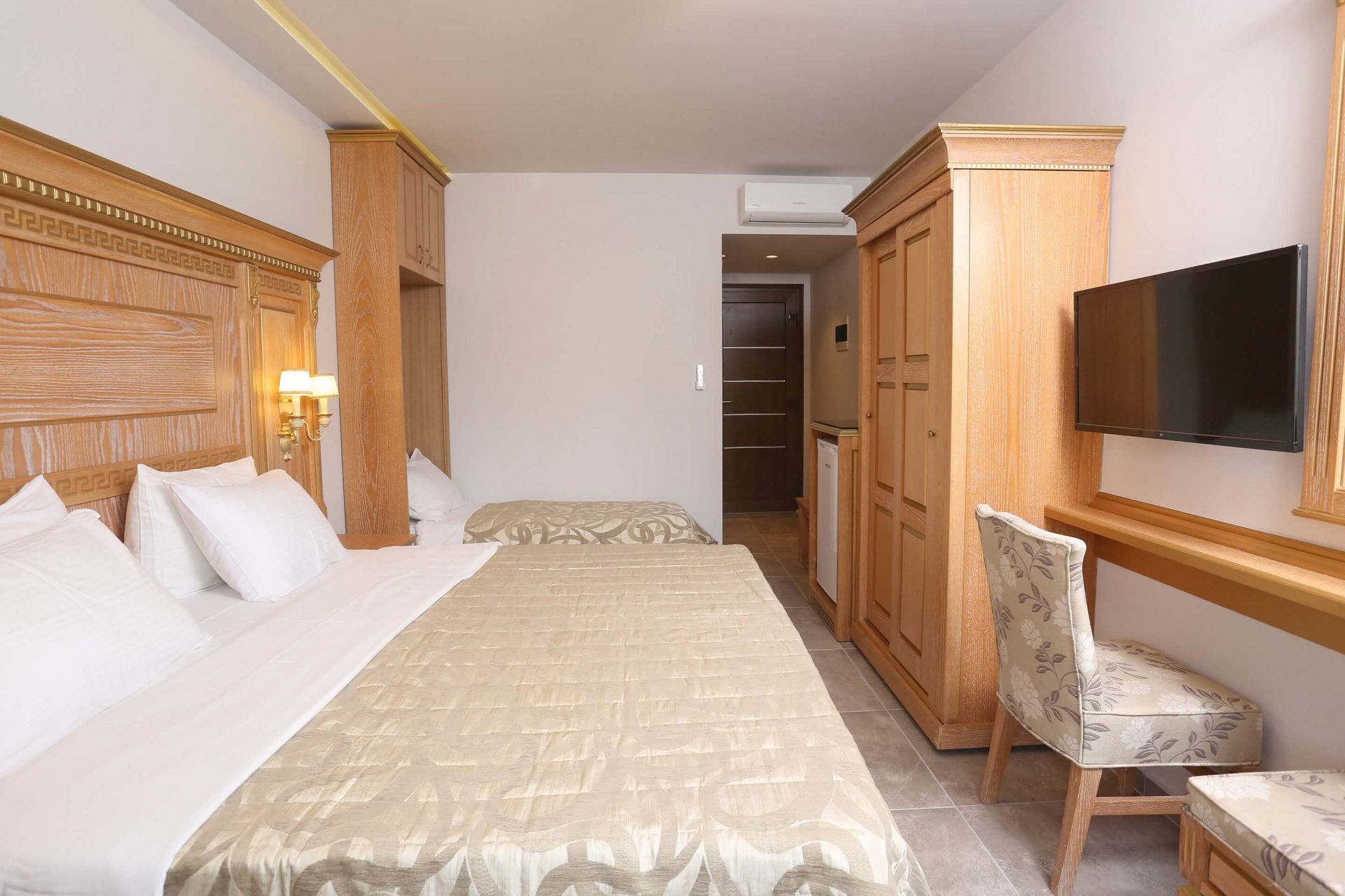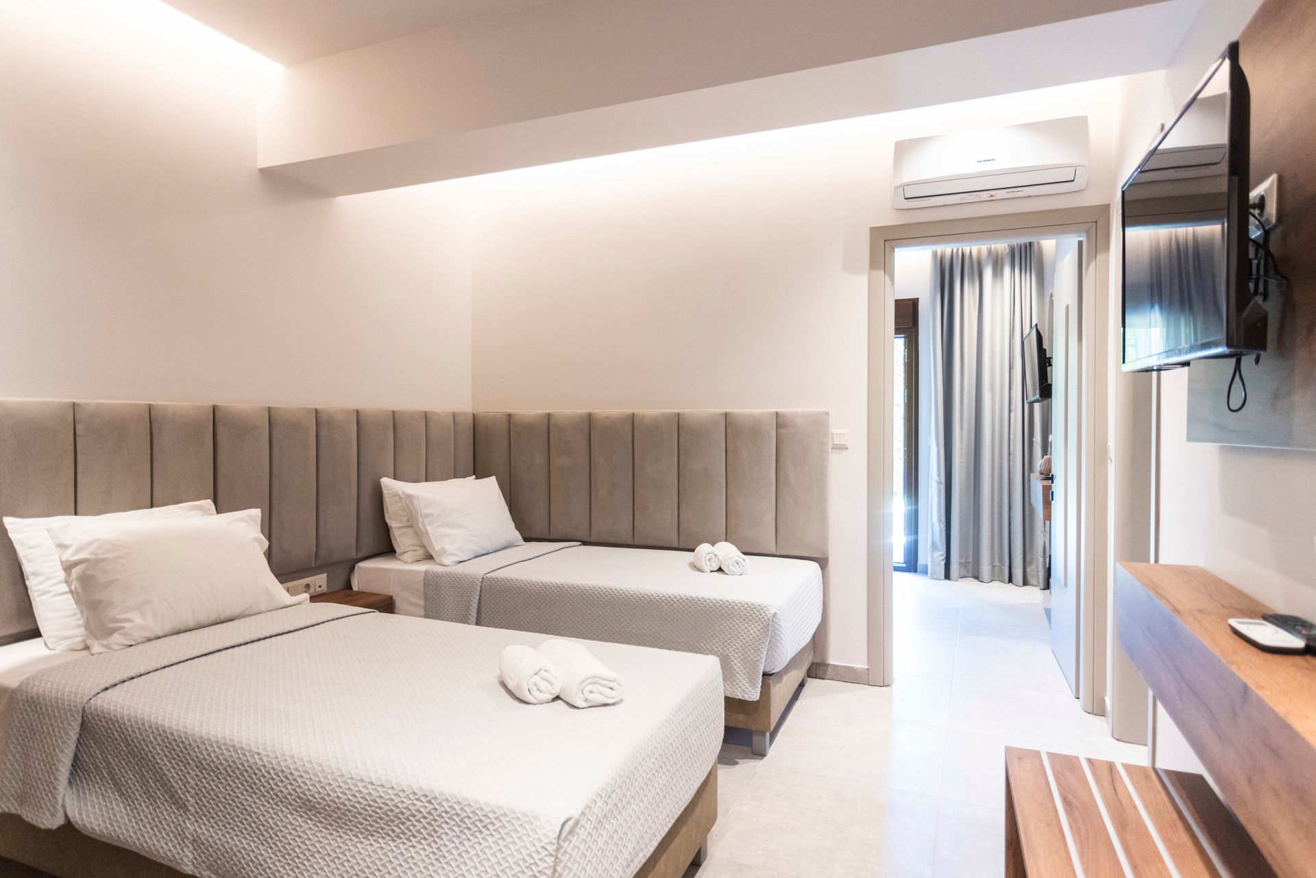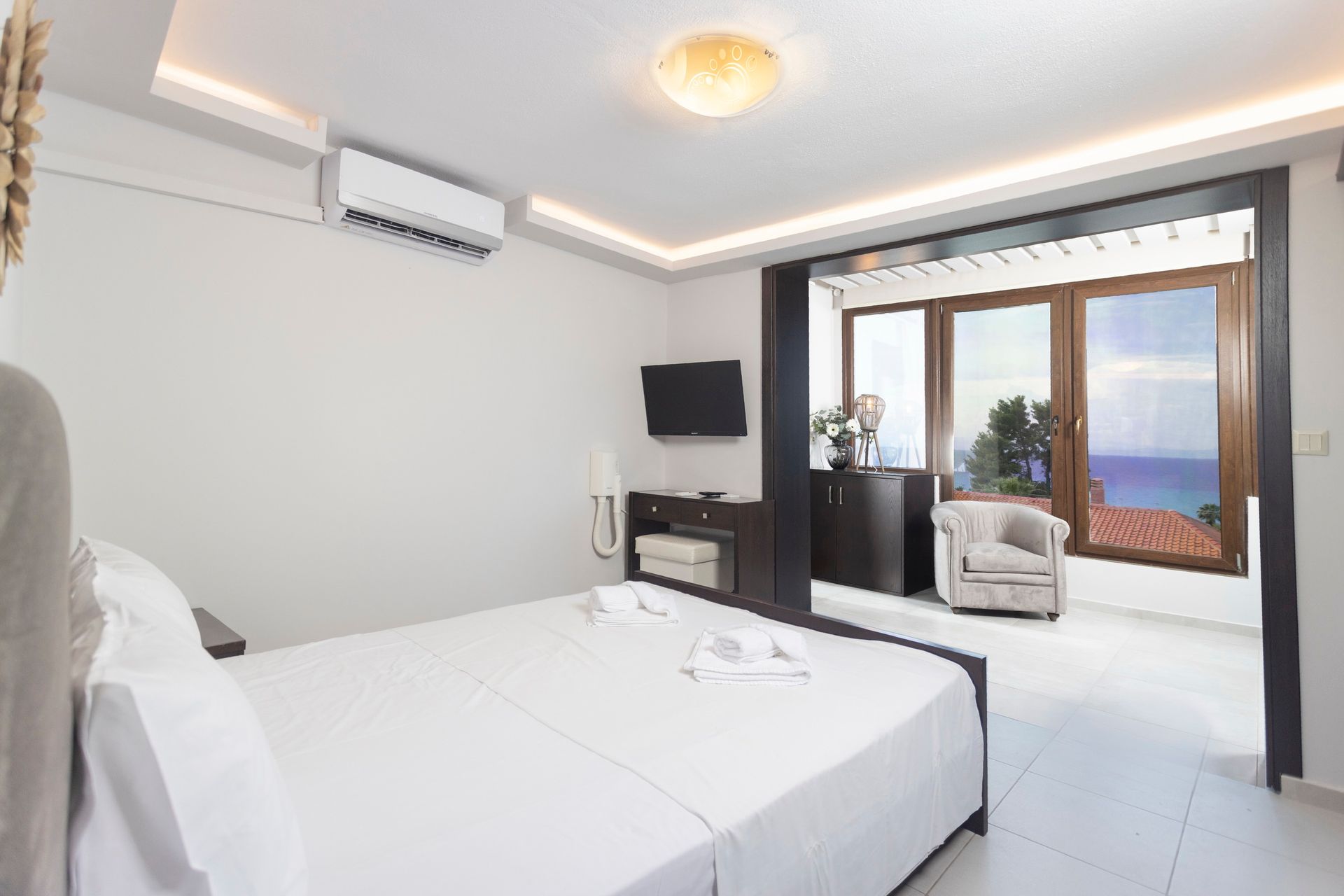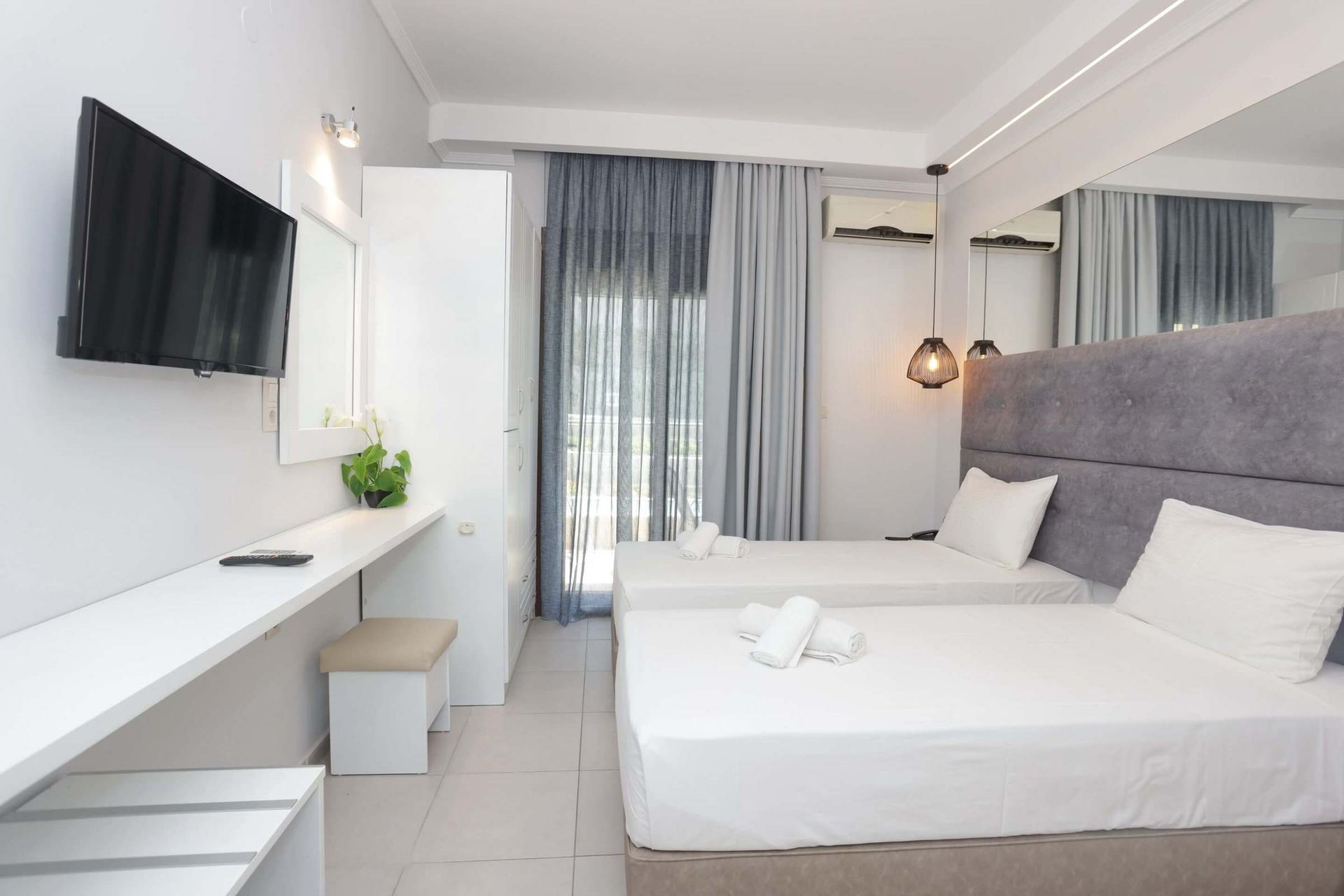 Algemene beschrijving:Dit resort hotel Anna Maria Paradise bevindt zich ca. 200 m van een zand-/kiezelstrand. Op het strand staan ligstoelen en parasols tegen betaling gereed. De stad Hanioti ligt op ongeveer 2 km afstand (Afytos ongeveer 21 km, Kassandria ongeveer 25 km). Een supermarkt is na ongeveer 900 m bereikbaar. In de omgeving van het Anna Maria Paradise bereikt u verschillene bars en restaurants (1 km). Een bushalte (ca. 100 m) zorgt voor mobiliteit op vakantie. Voor medische zorg in geval van nood vindt u een ziekenhuis na ongeveer 65 km. De luchthaven (SKG) is ongeveer 95 km van het hotel vandaan. Faciliteiten:Dit één verdieping tellende hotel beschikt over in totaal 58 kamers. Daarnaast beschikt het hotel ook over een receptie (check in vanaf 14:00 uur, uitchecken tot 11:00 uur), een lobby met bar, airconditioning, een kluisje (tegen betaling) evenals een parkeerplaats (gratis). Het gastronomisch gedeelte omvat twee restaurants (airconditioned). De hotelbar biedt gasten verfrissende drankjes in een gezellige atmosfeer. De hotelgasten kunnen gratis gebruik maken van Wifi. Voor gasten die afhankelijk zijn van een rolstoel biedt het hotel barrièrevrije toegangen. Zwembad:Buiten bevindt zich een zoetwater zwembad met een kinderbad. Hier zijn ligstoelen en parasols gratis beschikbaar. Een bar bij het zwembad biedt gasten verfrissende drankjes (geopend van 11:00 - 00:00 uur). Verzorging:Ontbijt (08:00 - 10:00 uur) in buffetvorm. Halfpension omvat ontbijt en diner. Sport/Activiteiten:Entertainment voor volwassenen: avondshows en livemuziek. Aanvullende informatie:Voor bepaalde faciliteiten, voorzieningen of activiteiten kunnen extra kosten in rekening worden gebracht. Sommige diensten zijn afhankelijk van de plaatselijke klimatologische omstandigheden en van het seizoen. Het hotelpersoneel spreekt Grieks, Nederlands, Duits en Engels. Geaccepteerde betalingsmiddelen: Visa en Euro/MasterCard. 2 SlaapKamers Deluxe Bungalow:Voorzien van tweepersoonsbed, babybedje (gratis), waterverhitter (gratis), internet (gratis), kluisje (tegen betaling) en sat-tv, individueel verstelbare airco. Badkamer met douche. Grootte: 40 m². Superior FamilieKamer:Uitgerust met 2 eenpersoonsbedden of tweepersoonsbed, babybedje (gratis), balkon, waterverhitter (gratis), internet (gratis), kluisje (tegen betaling) en sat-tv, individueel verstelbare airco. Badkamer met douche. Grootte: 28 m². 2 SlaapKamers FamilieSuite:Uitgerust met tweepersoonsbed en babybedje (gratis). Grootte: 38 m². 2 SlaapKamers Premium Superior FamilieSuite (Zee zicht):Uitgerust met queensizebed, 2 eenpersoonsbedden of tweepersoonsbed, babybedje (gratis), balkon, waterverhitter (gratis), internet (gratis), kluisje (tegen betaling) en sat-tv, individueel verstelbare airco. Badkamer met douche. 2 SlaapKamers Superior FamilieSuite (Zee zicht):Uitgerust met 2 eenpersoonsbedden of tweepersoonsbed, babybedje (gratis), waterverhitter (gratis), internet (gratis), kluisje (tegen betaling) en sat-tv, individueel verstelbare airco. Badkamer met douche. Grootte: 38 m². Maisonette (Zee zicht):Voorzien van 2 eenpersoonsbedden of tweepersoonsbed, slaapbank als extra bed, extra bed, babybedje (gratis) en balkon. Grootte: 40 m². Dubbel Deluxe Kamer (TuinZicht):Voorzien van kingsizebed, 2 eenpersoonsbedden of tweepersoonsbed, slaapbank als extra bed, extra bed, babybedje (gratis), balkon, waterverhitter (gratis), internet (gratis), kluisje (tegen betaling) en sat-tv, individueel verstelbare airco. Badkamer met douche. Grootte: 28 m². Dubbel Superior Kamer (TuinZicht):Uitgerust met 2 eenpersoonsbedden of tweepersoonsbed, babybedje (gratis), balkon, waterverhitter (gratis), internet (gratis), kluisje (tegen betaling) en sat-tv, individueel verstelbare airco. Badkamer met douche. Grootte: 20 m². DriePersoons Superior Kamer:Voorzien van 2 eenpersoonsbedden of tweepersoonsbed, slaapbank als extra bed, extra bed, babybedje (gratis), balkon of terras, waterverhitter (gratis), internet (gratis), kluisje (tegen betaling) en sat-tv, individueel verstelbare airco. Badkamer met douche. Grootte: 24 m².