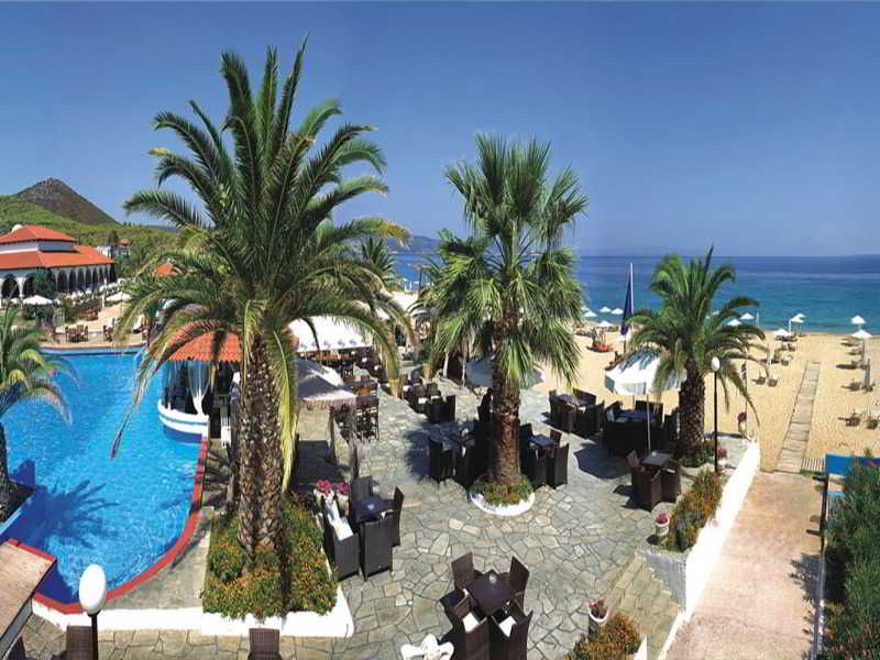 Dit hotel ligt midden in de baai die het schiereiland Sithonia vormt en het scheidt van Athos. De luchthaven van Thessaloniki ligt op ongeveer 100 km afstand, maar de omgeving is de thuisbasis van enkele van de mooiste, traditionele en pittoreske dorpen van Chalkidiki, die zeker de rit over de kronkelende wegen waard zijn. Dit elegante resort strekt zich uit over de idyllische locatie, de enorme palmentuin loopt van de kust tot de glooiende heuvels en vertegenwoordigt een natuurlijke verbinding tussen het magnifieke water en de imposante bergen van Athos. Elk van de kamers is ingericht met een uniek design, met speciale zorg en fijne stijl, waardoor een oase van rust ontstaat. Ze bieden comfort en ontspanning in combinatie met de dynamische harmonie van kleuren en kunst. Gasten kunnen een verfrissende duik nemen in het buitenzwembad en een kleurrijke cocktail halen bij de bar aan het zwembad.