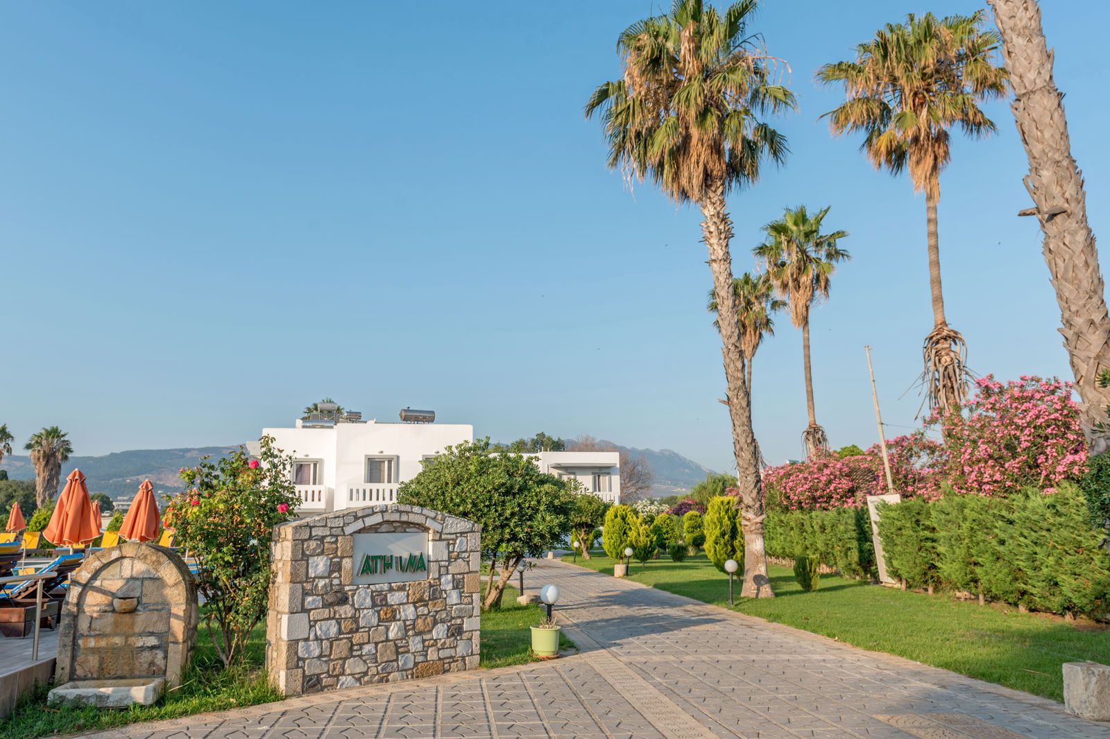 In Athina Appartementen kun je heerlijk genieten van je welverdiende vakantie. Athina Appartementen is een kleinschalig en gezellig 3-sterren appartementencomplex gelegen in een groene en landelijke omgeving. De ruime appartementen bieden je een comfortabel verblijf in het prachtige Lambi op loopafstand van strand en centrum. TIP: boek deze vakantie als Fly & Go Gemak voorop: pakketreis met vlucht + deze accommodatie + huurauto De verzekering voor je auto is geregeld Vrijheid en avontuur: ontdek in je eigen tempo je vakantiebestemming Bekijk deze Fly & Go vakantie Winter Wanneer je tussen 10-04-2024 en 31-10-2027 in deze accommodatie verblijft, is onderstaande informatie van toepassing. Ligging Openbaar strand op circa 550 meter Zandstrand Centrum van Kos-Stad op circa 700 meter Dichtstbijzijnde winkel op circa 500 meter Dichtstbijzijnde restaurant op circa 500 meter Bushalte op circa 700 meter Algemeen & faciliteiten 2 gebouwen Maximaal 2 verdiepingen 34 appartementen Receptie Op gezette tijden geopend Lobby Geen liften Wifi in diverse openbare ruimtes Tuin Openbare parkeergelegenheid Privé parkeergelegenheid Restaurants & bars Snackbar Zwembaden Buitenzwembad Buitenzwembad voor kinderen Zonneterras Ligbedden met matrasjes Parasol Kinderfaciliteiten Babybedje op aanvraag via ons contact center Verzorging Logies Hotelkamers Studio Standaard S Oppervlakte tussen 29 en 30 m² Airconditioning tegen betaling Televisie Kitchenette 2-pits kooktoestel Koffie- en theefaciliteiten Koelkast Badkamer douche, toilet en föhn Balkon of terras (zitje) 2-kamerappartement Standaard 2A Oppervlakte tussen 29 en 30 m² Woon-/slaapkamer Slaapbank voor één persoon Eén slaapkamer Airconditioning tegen betaling Televisie Kitchenette 2-pits kooktoestel Koffie- en theefaciliteiten Koelkast Badkamer douche, toilet en föhn Balkon of terras (zitje) 2-kamerappartement Standaard 2A1 Oppervlakte tussen 34 en 35 m² Woon-/slaapkamer Slaapbank voor twee personen Eén slaapkamer Airconditioning tegen betaling Televisie Kitchenette 2-pits kooktoestel Koffie- en theefaciliteiten Koelkast Badkamer douche, toilet en föhn Balkon of terras (zitje) 2-kamerappartement Maisonnette 2AM Oppervlakte tussen 29 en 30 m² In maisonettestijl Woon-/slaapkamer Slaapbank voor één persoon Eén slaapkamer Airconditioning tegen betaling Televisie Kitchenette 2-pits kooktoestel Koffie- en theefaciliteiten Koelkast Badkamer douche, toilet en föhn Balkon of terras (zitje)