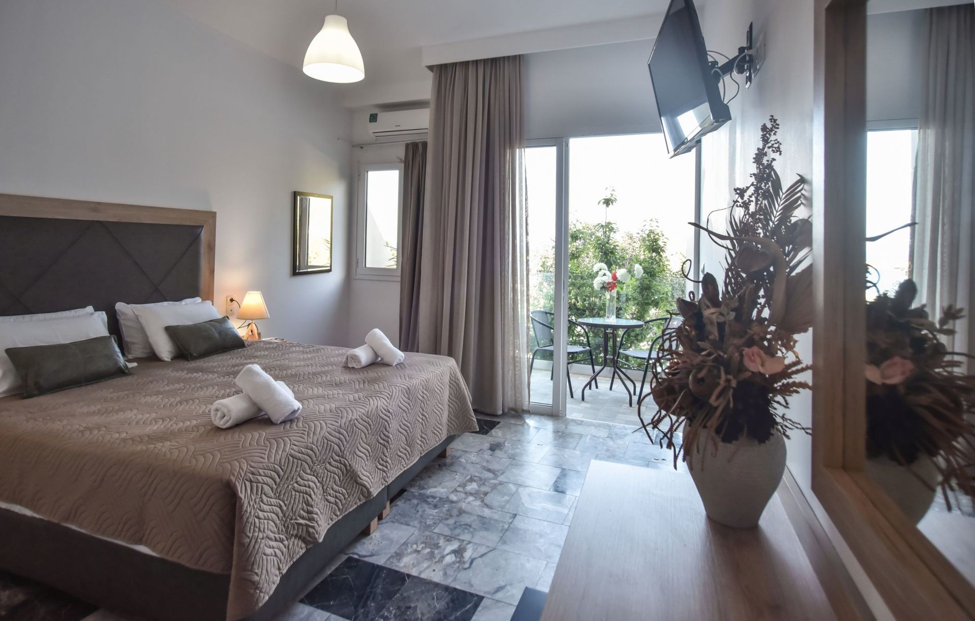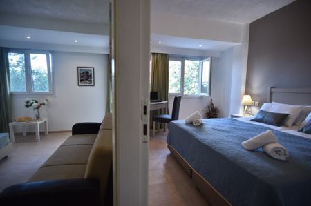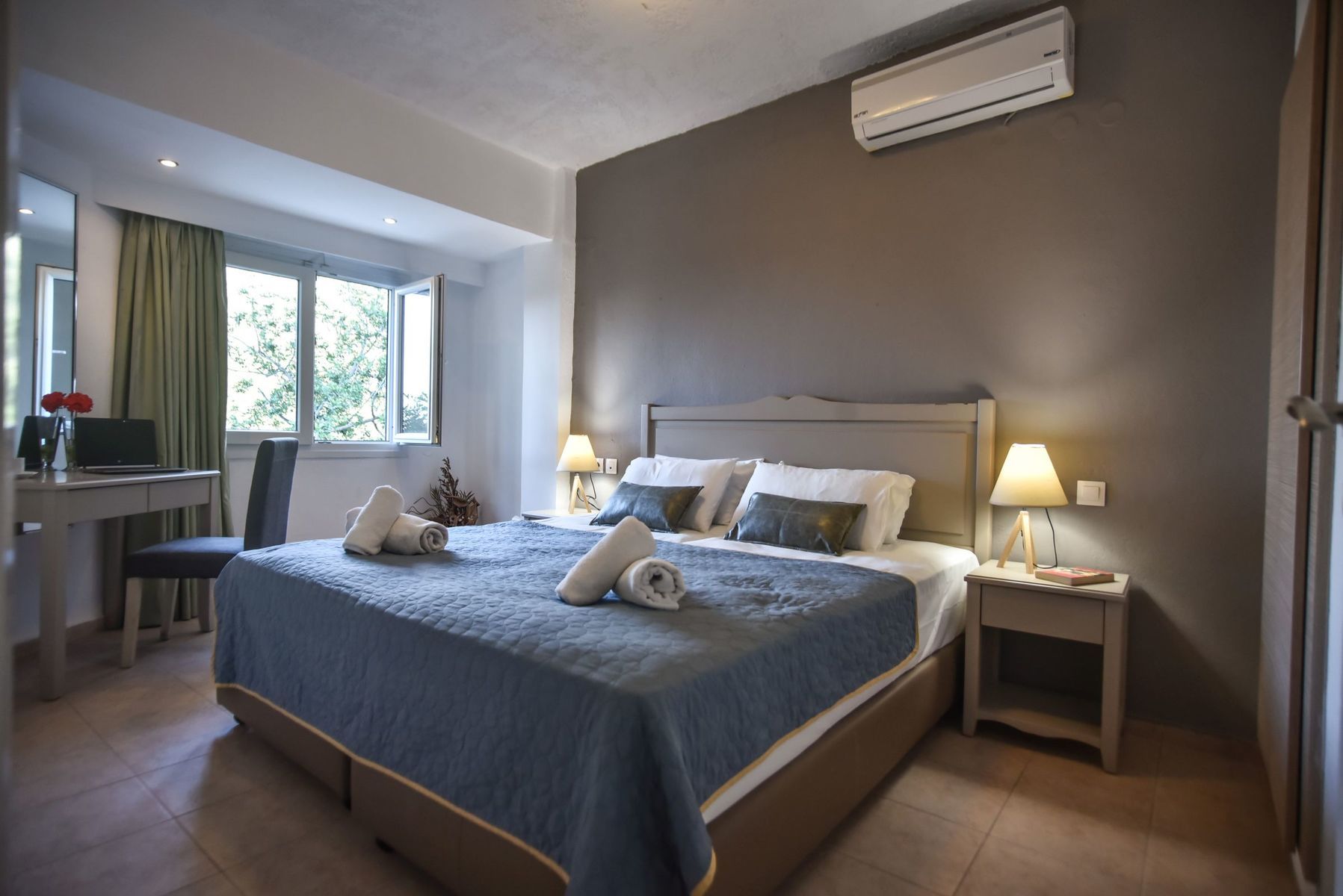 Het aparthotel ligt op een heuvel boven de zee en biedt uitzicht op een van de meest spectaculaire uitzichten op de Middellandse Zee en het Talea-gebergte. Er is een strand op 200 m van het hotel en het resortcentrum ligt op 800 m afstand. Een bushalte voor de lokale busdienst tussen Heraklion en Rethymno, die elk half uur rijdt, bevindt zich op 150 m van het aparthotel. Er is ook een lokale resorttrein die mensen door het dorp en naar het volgende dorp Panormo brengt. Op loopafstand zijn er stranden, winkels, bars, restaurants, het medisch centrum en een apotheek. Dit aantrekkelijke en populaire hotel en zijn appartementen heten je van harte welkom in een informele sfeer en bieden comfortabele en goed uitgeruste accommodatie. Het hotel heeft een receptie in de lobby, een bar, een restaurant en een daktuin met een aangename sfeer en een prachtig panoramisch uitzicht op de omgeving. Draadloos breedband internet is beschikbaar. Het hotel beschikt over in totaal 50 kamers en is voorzien van airconditioning, een hotelkluis, een wisselkantoor, een tv-lounge, een speeltuin en een café. Gasten die met de auto komen, kunnen hun voertuig parkeren op de parkeerplaats. De accommodatie biedt ruime, gemeubileerde studio’s en appartementen met verschillende indelingen en 2 of 3 kamers. Allemaal met een eigen badkamer met douche, toilet, tweepersoonsbedden, een huurkluis, een haardroger, individueel regelbare airconditioning te huur en een balkon of terras. Bovendien zijn ze ook voorzien van een telefoon met directe buitenlijn, een tv, internettoegang en een strijkijzer en strijkplank. De keuken/kitchenettes zijn uitgerust met een koelkast, een fornuis en thee- en koffiefaciliteiten. Er zijn kamers met uitzicht op zee en op de tuin.