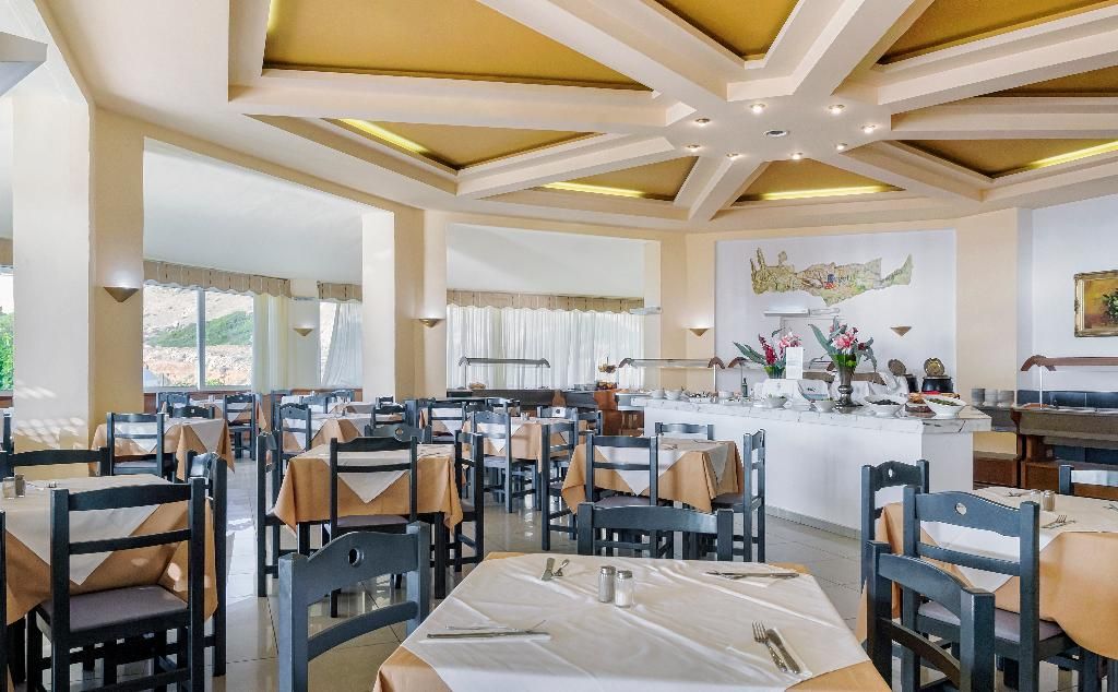 Het gezinsvriendelijke hotel, perfect voor strandvakantiegangers en gezinnen, ligt in Rethymnon (Platanes), niet verder dan 50 meter van het strand. Tot aan de dichtstbijzijnde luchthaven is het ongeveer 68 km, Chania (CHQ) bevindt zich op circa 83 km afstand. Dit hotel met een 24-uurs receptie beschikt over 82 kamers. Service zoals een bagagedepot, een kluis en een wisselkantoor draagt bij tot een comfortabel verblijf. In de openbare ruimtes is Wi-Fi verkrijgbaar. Rolstoelvriendelijke faciliteiten zijn beschikbaar. Een supermarkt en andere winkels zijn voorhanden om heerlijk te winkelen of te flaneren. Op het terrein van het hotel bevinden zich een mooie tuin en een fraaie speelplaats. Tot de overige voorzieningen van het verblijf behoren een tv-ruimte, een speelkamer en een bibliotheek. De gasten die met de auto komen, kunnen in een garage of op de parkeerplaats parkeren. Onder de beschikbare voorzieningen bevinden zich een 24-uurs beveiligingsdienst, een oppasservice, een kinderopvang, een autoverhuur, een medische dienst, een 24-uurs roomservice en een wasservice. In de kamers zijn airconditioning en een centraal regelbare verwarming voorhanden. De gasten kunnen vanaf het balkon of het terras van het uitzicht op zee genieten. De kamers beschikken over een tweepersoonsbed. Er zijn aparte slaapkamers aanwezig. Ook babybedjes en extra bedden kunnen worden klaargezet. De beste bescherming voor het eigendom van de gasten biedt een kluis. Faciliteiten als een koelkast, een mini-koelkast en een thee-/koffiezetapparaat veraangenamen het verblijf. Een telefoon met directe buitenlijn, een televisie, een radio en Wi-Fi (kosteloos) ronden het serviceaanbod af. De badkamer, uitgerust met een douche en een bad, beschikt over een föhn. Het hotel beschikt over gezinskamers en rokerskamers. Het zwemcomplex met buitenbaden en zone voor kinderen is geschikt voor actieve ontspanning en aquarobicstrainingen. Op het zonneterras staan comfortabele ligstoelen en schaduwrijke parasols klaar voor gebruik. Bij de zwembadbar kunnen de gasten kiezen uit diverse verfrissende drankjes. Op het gebied van recreatie biedt het hotel naast tennis, basketbal, duiken, de fitnessstudio, tafeltennis en een spa ook nog biljart tegen betaling aan. Een animatieprogramma, een miniclub en een disco garanderen volop recreatieplezier. Copyright GIATA 2004 – 2025. Multilingual, powered by www.giata.com for client no. 125551 Een restaurant, een eetzaal, een ontbijtzaal en een bar behoren tot de culinaire faciliteiten. Er kan all-inclusive worden geboekt. Naast ontbijt biedt het verblijf ook middag- en avondeten à la carte. Daarnaast stelt het hotel snacks beschikbaar. Het hotel beschikt over een assortiment alcoholische en alcoholvrije dranken.
