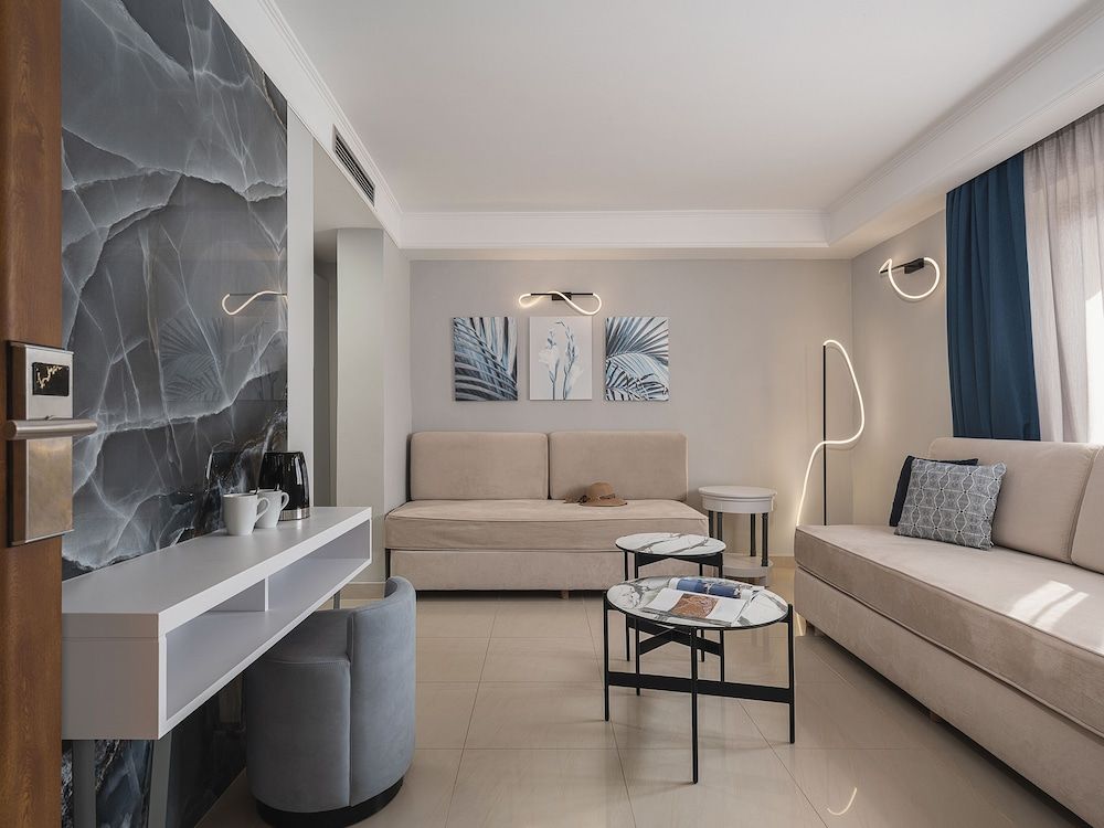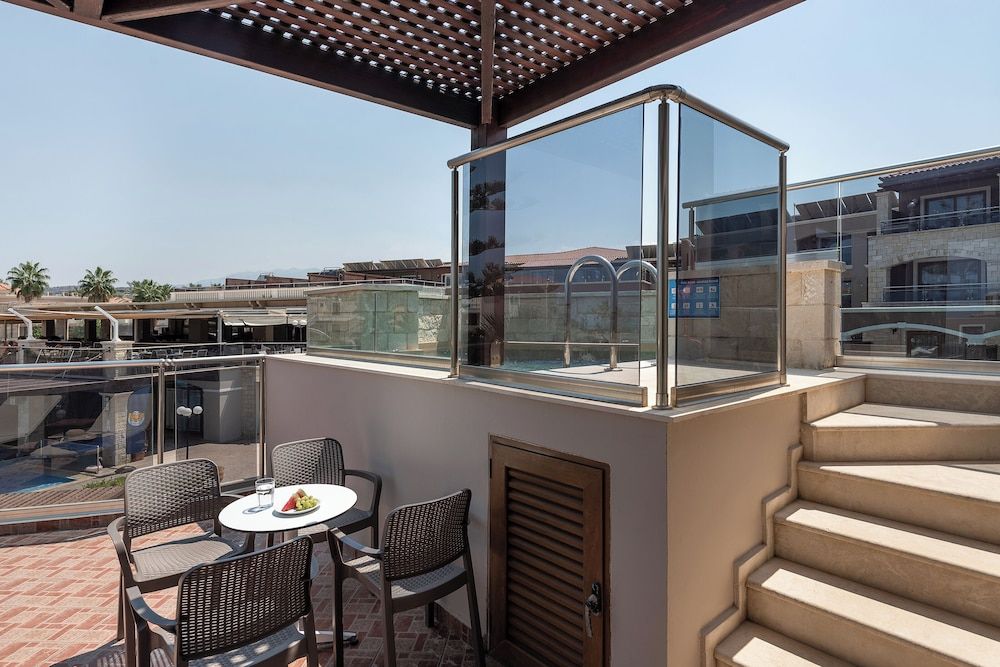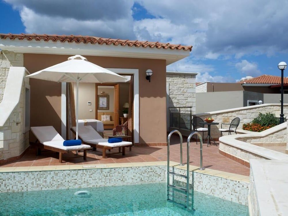 Het Caldera Creta Paradise is gebouwd in 3 complexen, op een zandstrand genaamd Gerani, en combineert de traditionele Kretenzische dorpscharme met moderne resortfaciliteiten. Het ligt op slechts 16 minuten rijden van het pittoreske stadje Chania en op 2,5 km van het dorp Platanias. De haven van Souda ligt op 20,5 km afstand en de internationale luchthaven van Chania ligt op 32 km van het hotel.