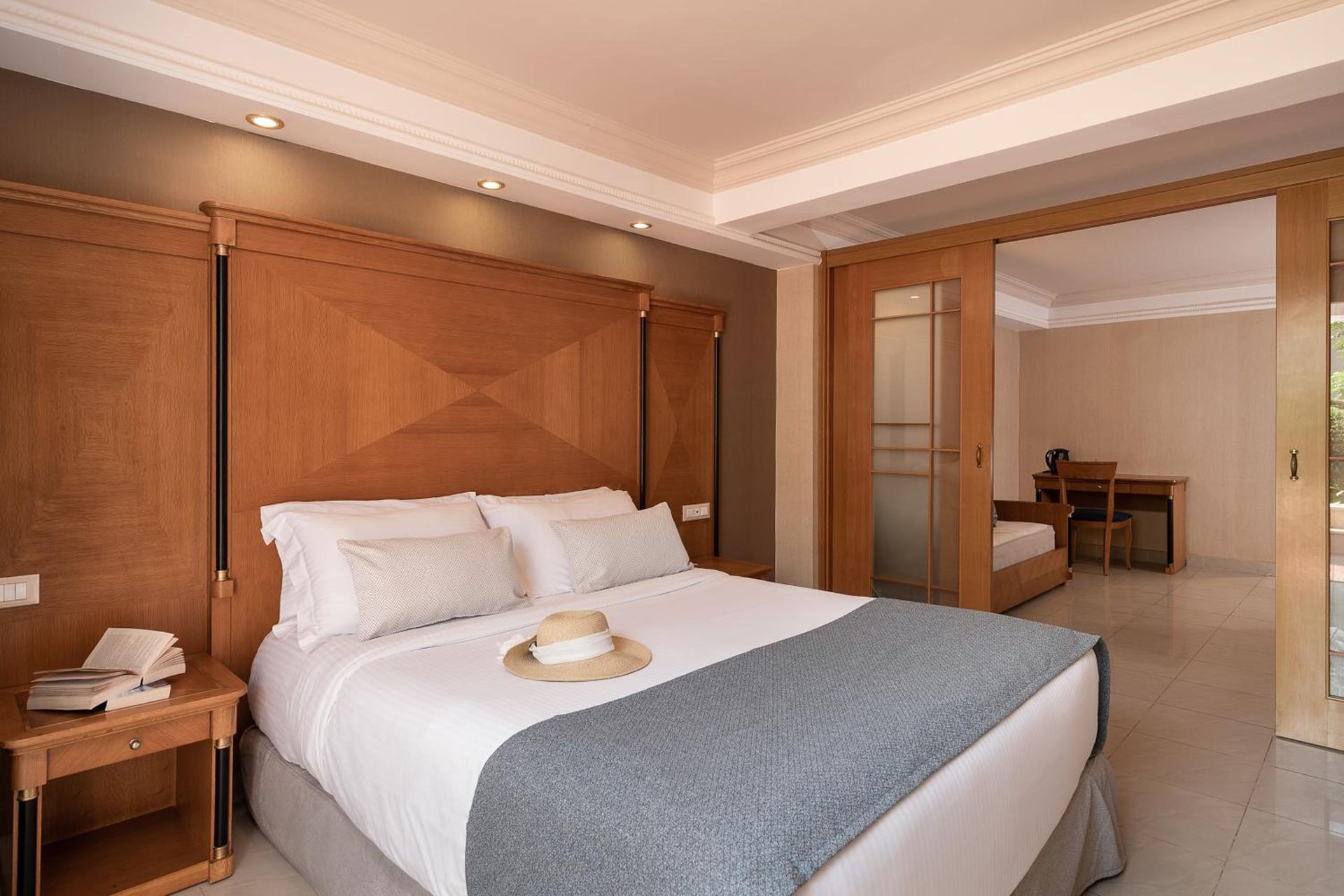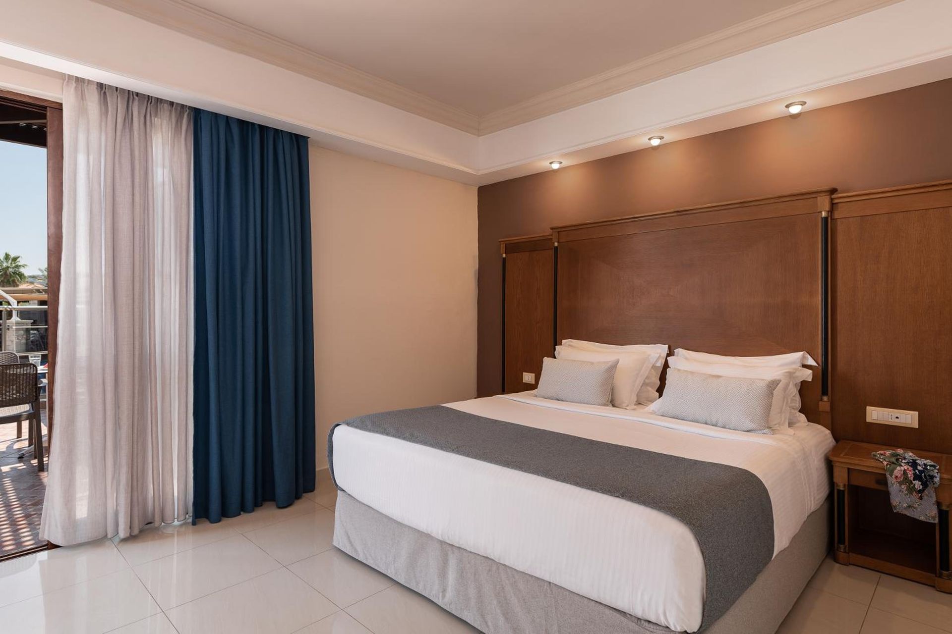 - Tweepersoonskamer (DZ, ca. 25 qm), in het hoofdgebouw, aircon., koelkast, koffie-/theezetapparaat, tv, telefoon, WiFi, kluis.
