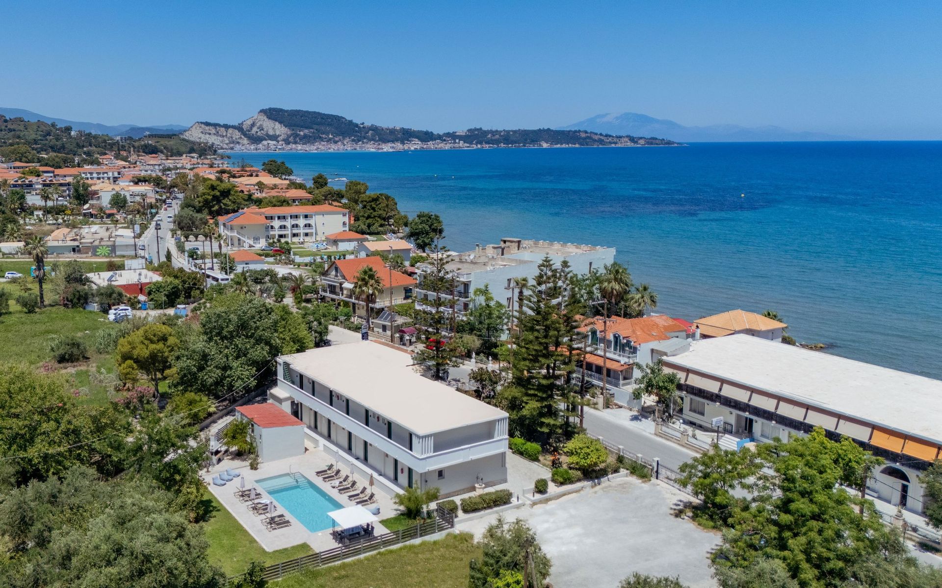Algemene beschrijving:Op ongeveer 30 m afstand van het strand bevindt zich het charmante hotel Capriccio Studios. De stad Zakynthos Town ligt op ongeveer 3 km afstand (Laganas ongeveer 10 km). Een supermarkt is na ongeveer 10 m bereikbaar. In de omgeving van het Capriccio Studios vindt u verschillene bars en restaurants (150 m). Uitgaansmogelijkheden zoals een bioscoop bevinden zich op ongeveer 3 km afstand. Een taxistandplaats (ca. 200 m) evenals een bushalte (ca. 100 m) zorgen voor mobiliteit op vakantie. Voor medische zorg in geval van nood vindt u een ziekenhuis na ongeveer 6 km. De luchthaven (ZTH) is ongeveer 5 km van het hotel vandaan. Faciliteiten:Dit één verdieping tellende hotel beschikt over in totaal 13 kamers. Bovendien beschikt het hotel over een lobby, airconditioning evenals een parkeerplaats (tegen een borgsom). De hotelgasten kunnen gratis gebruik maken van Wifi. Schoonmaak inclusief. Zwembad:In het buitenbereik van het complex vindt u een zoetwater zwembad met een geïntegreerd kinderbad (geopend van april tot oktober). Hier zijn ligstoelen evt. tegen betaling beschikbaar. Aanvullende informatie:Voor bepaalde faciliteiten, voorzieningen of activiteiten kunnen extra kosten in rekening worden gebracht. Sommige diensten zijn afhankelijk van de plaatselijke klimatologische omstandigheden en van het seizoen. Het hotelpersoneel spreekt Engels en Grieks. Geaccepteerde betalingsmiddelen: Visa, JCB, Euro/MasterCard en Diners Club. Comfort Studio:Uitgerust met 2 eenpersoonsbedden, tegelvloer, balkon, waterverhitter (gratis), internet (gratis), kluisje (tegen betaling) en flatscreen sat-tv, individueel verstelbare airconditioning (tegen betaling). Badkamer met douche. Handdoeken worden 3x per week verschoond. Grootte: 25 m². DriePersoons Comfort Studio:Voorzien van 2 eenpersoonsbedden, tegelvloer, balkon, waterverhitter (gratis), internet (gratis), kluisje (tegen betaling) en flatscreen sat-tv, individueel verstelbare airconditioning (tegen betaling). Badkamer met douche. Handdoeken worden 3x per week verschoond. Grootte: 25 m².