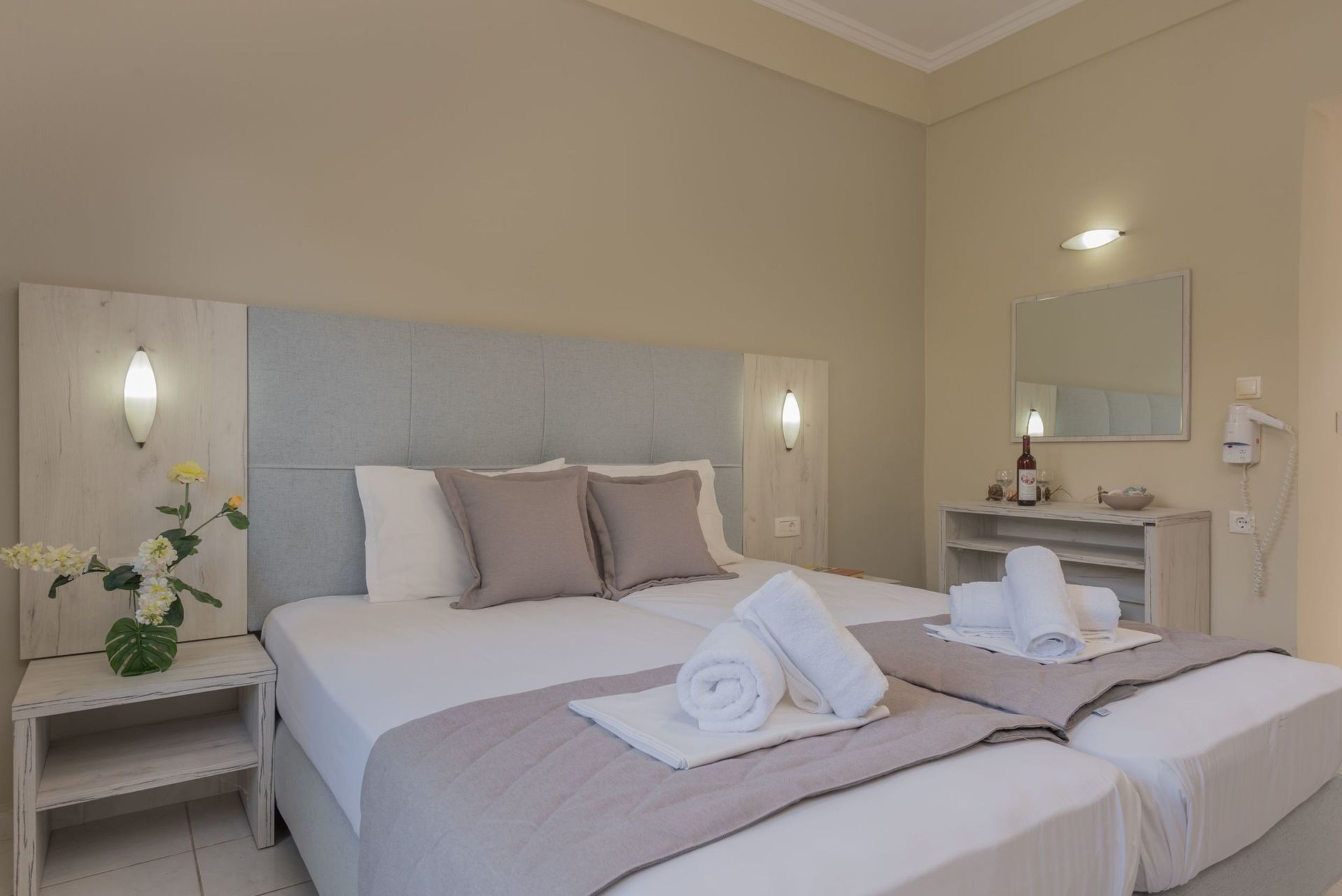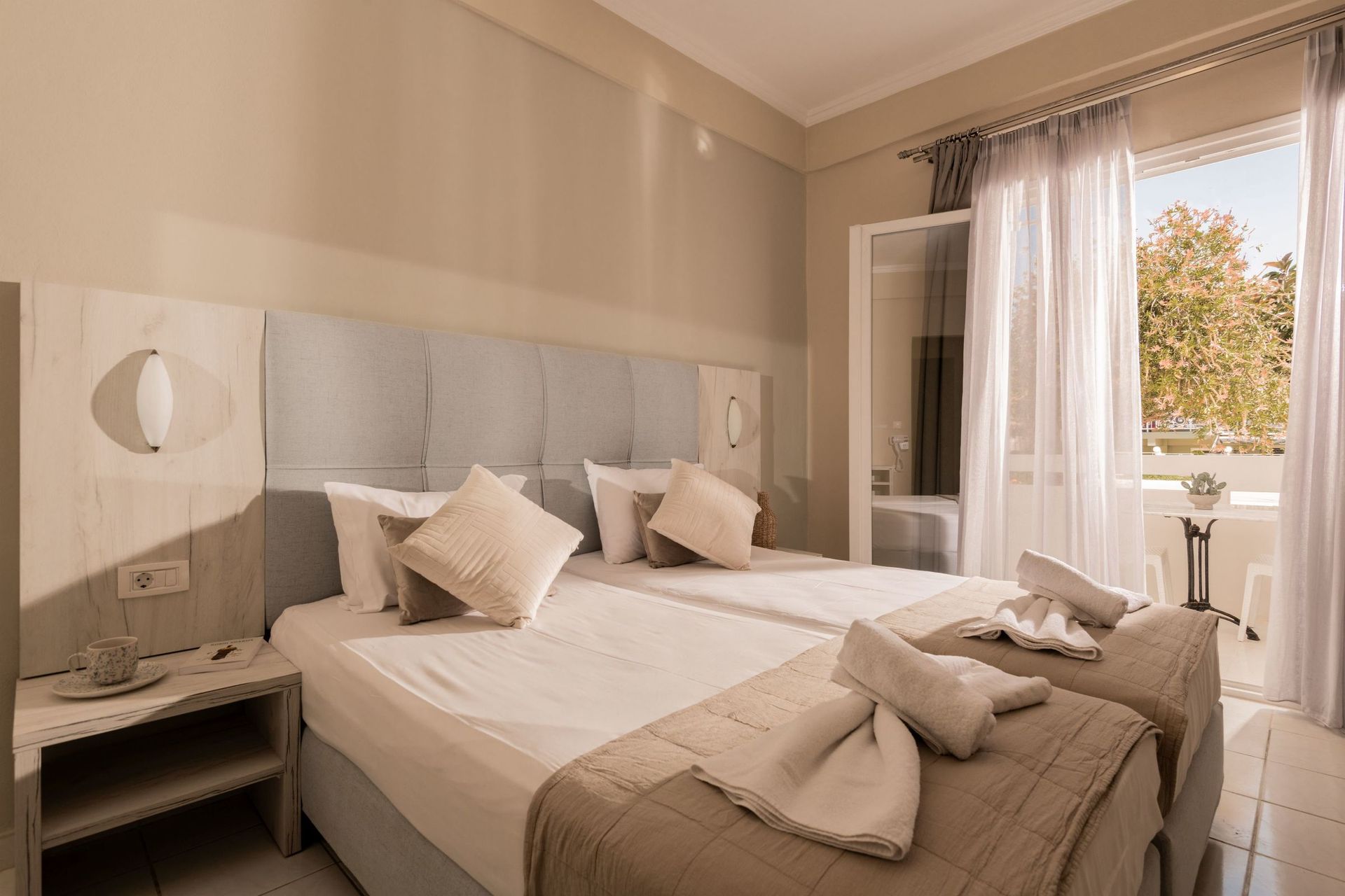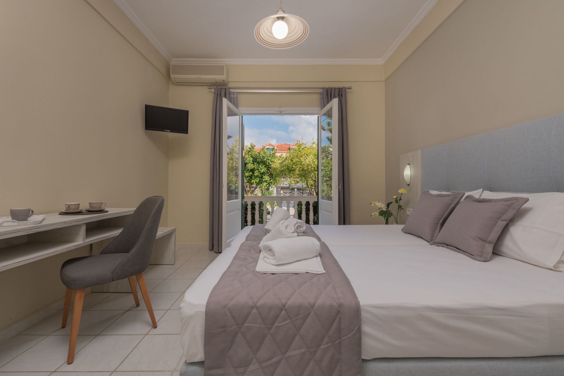 Algemene beschrijving:Op ongeveer 30 m afstand van het strand bevindt zich het charmante hotel Capriccio Studios. De stad Zakynthos Town ligt op ongeveer 3 km afstand (Laganas ongeveer 10 km). Een supermarkt is na ongeveer 10 m bereikbaar. In de omgeving van het Capriccio Studios vindt u verschillene bars en restaurants (150 m). Uitgaansmogelijkheden zoals een bioscoop bevinden zich op ongeveer 3 km afstand. Een taxistandplaats (ca. 200 m) evenals een bushalte (ca. 100 m) zorgen voor mobiliteit op vakantie. Voor medische zorg in geval van nood vindt u een ziekenhuis na ongeveer 6 km. De luchthaven (ZTH) is ongeveer 5 km van het hotel vandaan. Faciliteiten:Dit één verdieping tellende hotel beschikt over in totaal 13 kamers. Bovendien beschikt het hotel over een lobby, airconditioning evenals een parkeerplaats (tegen een borgsom). De hotelgasten kunnen gratis gebruik maken van Wifi. Schoonmaak inclusief. Zwembad:In het buitenbereik van het complex vindt u een zoetwater zwembad met een geïntegreerd kinderbad (geopend van april tot oktober). Hier zijn ligstoelen evt. tegen betaling beschikbaar. Aanvullende informatie:Voor bepaalde faciliteiten, voorzieningen of activiteiten kunnen extra kosten in rekening worden gebracht. Sommige diensten zijn afhankelijk van de plaatselijke klimatologische omstandigheden en van het seizoen. Het hotelpersoneel spreekt Engels en Grieks. Geaccepteerde betalingsmiddelen: Visa, JCB, Euro/MasterCard en Diners Club. Comfort Studio:Uitgerust met 2 eenpersoonsbedden, tegelvloer, balkon, waterverhitter (gratis), internet (gratis), kluisje (tegen betaling) en flatscreen sat-tv, individueel verstelbare airconditioning (tegen betaling). Badkamer met douche. Handdoeken worden 3x per week verschoond. Grootte: 25 m². DriePersoons Comfort Studio:Voorzien van 2 eenpersoonsbedden, tegelvloer, balkon, waterverhitter (gratis), internet (gratis), kluisje (tegen betaling) en flatscreen sat-tv, individueel verstelbare airconditioning (tegen betaling). Badkamer met douche. Handdoeken worden 3x per week verschoond. Grootte: 25 m². Algemene beschrijving:Op ongeveer 30 m afstand van het strand bevindt zich het charmante hotel Capriccio Studios. De stad Zakynthos Town ligt op ongeveer 3 km afstand (Laganas ongeveer 10 km). Een supermarkt is na ongeveer 10 m bereikbaar. In de omgeving van het Capriccio Studios vindt u verschillene bars en restaurants (150 m). Uitgaansmogelijkheden zoals een bioscoop bevinden zich op ongeveer 3 km afstand. Een taxistandplaats (ca. 200 m) evenals een bushalte (ca. 100 m) zorgen voor mobiliteit op vakantie. Voor medische zorg in geval van nood vindt u een ziekenhuis na ongeveer 6 km. De luchthaven (ZTH) is ongeveer 5 km van het hotel vandaan. Faciliteiten:Dit één verdieping tellende hotel beschikt over in totaal 13 kamers. Bovendien beschikt het hotel over een lobby, airconditioning evenals een parkeerplaats (tegen een borgsom). De hotelgasten kunnen gratis gebruik maken van Wifi. Schoonmaak inclusief. Zwembad:In het buitenbereik van het complex vindt u een zoetwater zwembad met een geïntegreerd kinderbad (geopend van april tot oktober). Hier zijn ligstoelen evt. tegen betaling beschikbaar. Aanvullende informatie:Voor bepaalde faciliteiten, voorzieningen of activiteiten kunnen extra kosten in rekening worden gebracht. Sommige diensten zijn afhankelijk van de plaatselijke klimatologische omstandigheden en van het seizoen. Het hotelpersoneel spreekt Engels en Grieks. Geaccepteerde betalingsmiddelen: Visa, JCB, Euro/MasterCard en Diners Club. Comfort Studio:Uitgerust met 2 eenpersoonsbedden, tegelvloer, balkon, waterverhitter (gratis), internet (gratis), kluisje (tegen betaling) en flatscreen sat-tv, individueel verstelbare airconditioning (tegen betaling). Badkamer met douche. Handdoeken worden 3x per week verschoond. Grootte: 25 m². DriePersoons Comfort Studio:Voorzien van 2 eenpersoonsbedden, tegelvloer, balkon, waterverhitter (gratis), internet (gratis), kluisje (tegen betaling) en flatscreen sat-tv, individueel verstelbare airconditioning (tegen betaling). Badkamer met douche. Handdoeken worden 3x per week verschoond. Grootte: 25 m².
