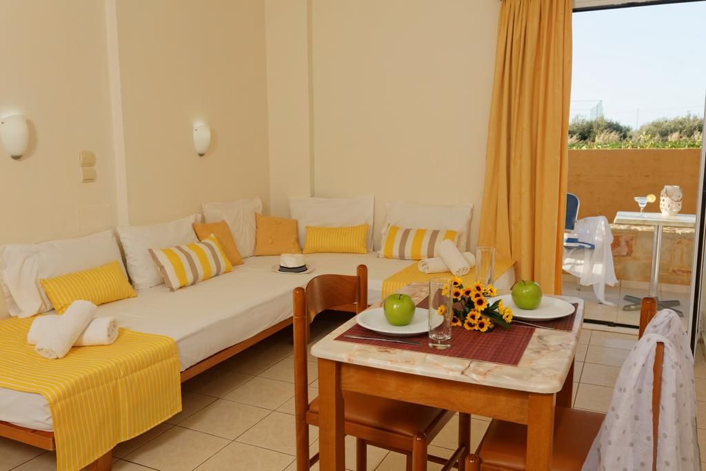Dit aparthotel ligt direct aan het strand, centraal in Malia.