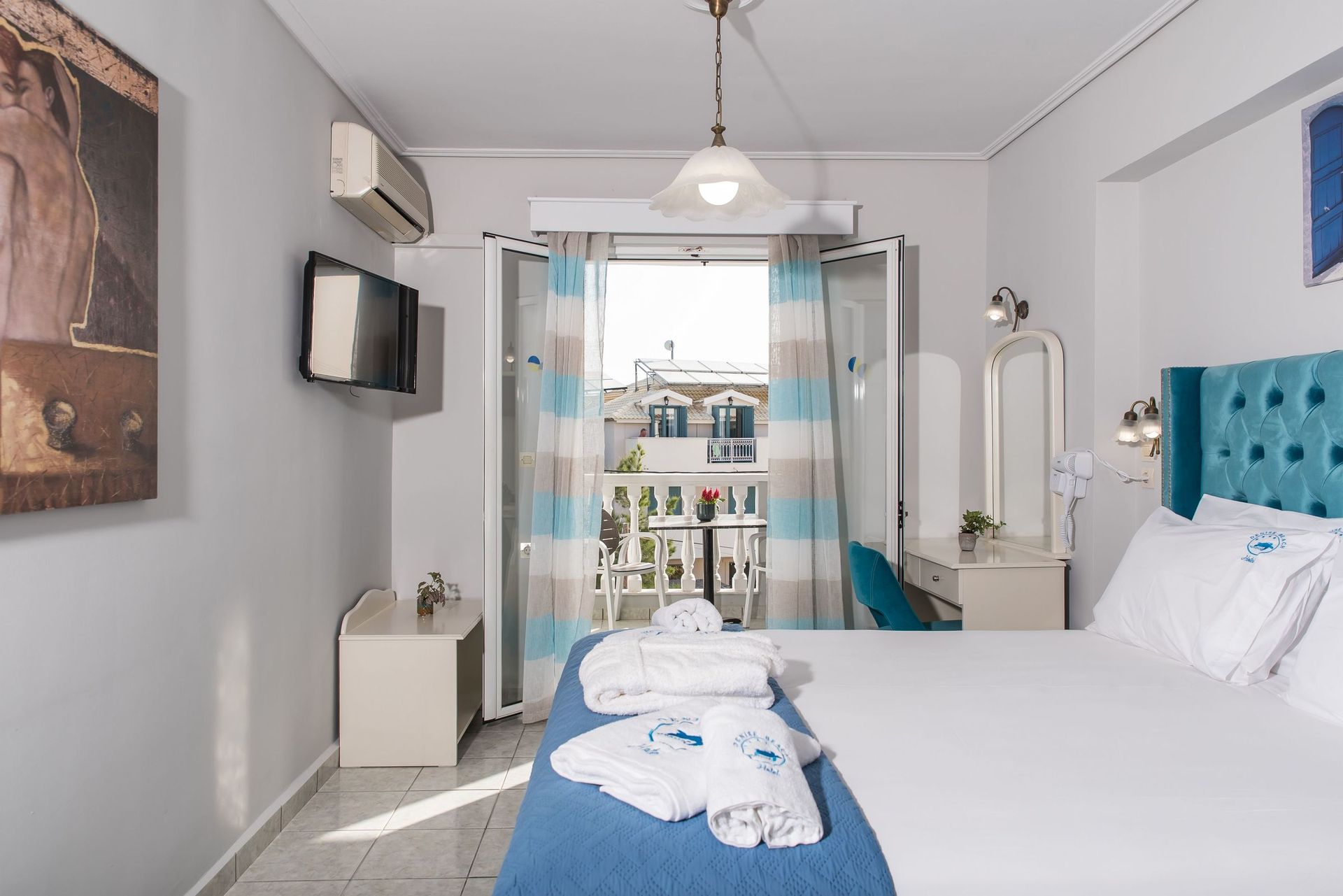 Het hotel ligt direct aan het strand, centraal in Laganas.