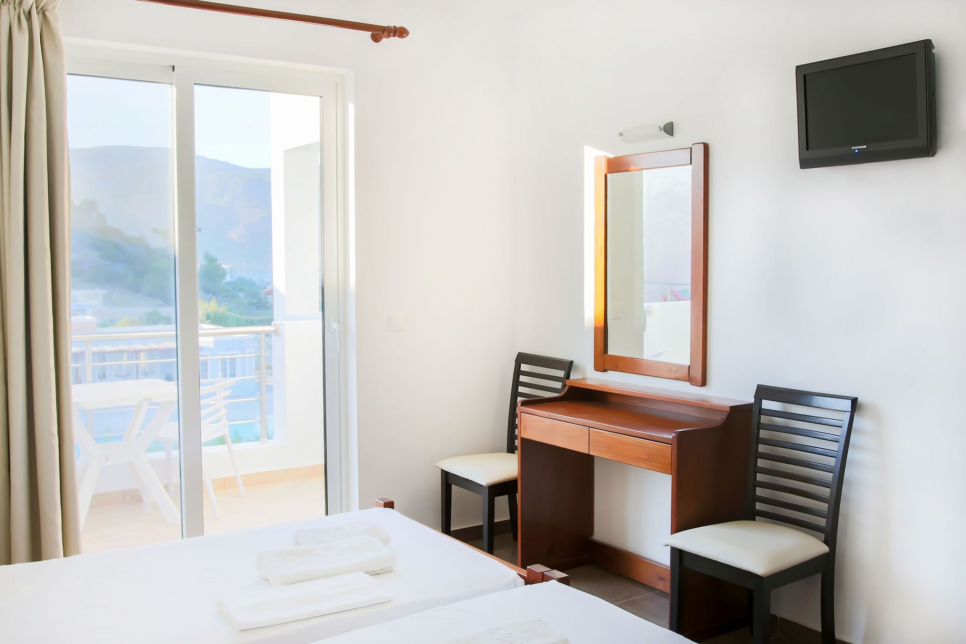 Dit aparthotel bevindt zich in Pigadia (Karpathos stad). Het vriendelijke personeel aan de receptie is graag bij alle vragen behulpzaam. Via Wi-Fi hebben de gasten toegang tot het internet. De kinderen kunnen zich op de speelplaats naar hartelust uitleven. Desgewenst beschikken de reizigers over parkeerplaatsen. Airconditioning in de kamers zorgt voor een aangenaam luchtklimaat. De meeste kamers hebben een balkon. Voor de jongste gasten staan kinderbedjes klaar. In een kluis kunnen waardevolle bezittingen kunnen tegen betaling worden opgeborgen. De kitchenette is van een koelkast voorzien. Voor vakantiecomfort zorgen een televisie en Wi-Fi (kosteloos). In de badkamer – uitgerust met een douche – vinden de gasten een föhn. Voor afwisselende recreatie en vrijetijdsbesteding staan de sport- en amusementsmogelijkheden van het hotel ter beschikking. Het zwemcomplex met buitenbaden en zone voor kinderen is geschikt voor actieve ontspanning en aquarobicstrainingen. Op het zonneterras staan comfortabele ligstoelen en schaduwrijke parasols klaar voor gebruik. Bij de zwembadbar kunnen de gasten kiezen uit diverse verfrissende drankjes. Een wellnessgedeelte met een sauna is in het verblijf aanwezig. Copyright GIATA 2004 – 2025. Multilingual, powered by www.giata.com for client no. 125551 Het horecagedeelte is uitgerust met een restaurant en een bar. Dagelijks wordt een voedzaam ontbijt geserveerd. Daarnaast stelt het aparthotel snacks beschikbaar.