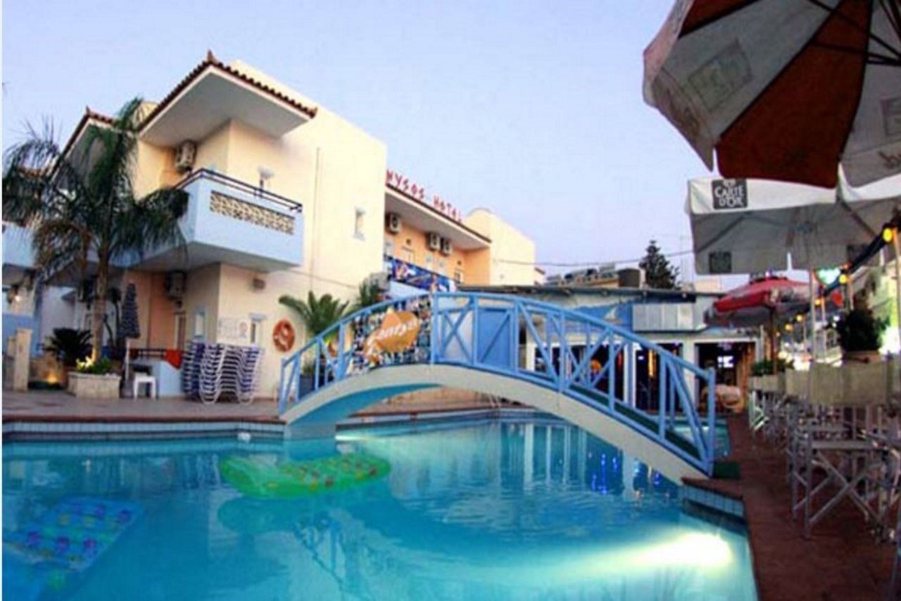 Het Dionyssos Hotel, gelegen op korte afstand van de luchthaven van Heraklion (N. Kazantzakis) en de haven, is gunstig gelegen aan de strandweg van Malia, op slechts 700 meter van de kust. Gasten kunnen genieten van een verfrissend zwembad met gratis ligbedden en parasols, een hot tub en biljart (tegen betaling). Extra voorzieningen zijn onder andere een grootbeeld-tv voor voetbalwedstrijden en een selectie bordspellen. Elke kamer beschikt over een gemeubileerd balkon of terras, gratis airconditioning, satelliet-tv, een telefoon met directe buitenlijn en een koelkast. Een kluis is beschikbaar tegen een kleine dagelijkse vergoeding. De meeste kamers bieden plaats aan een extra bed, een standaard extra bed of een slaapbank, perfect voor gezinnen. De badkamers zijn uitgerust met een douche, toilet, make-upspiegel en haardroger.