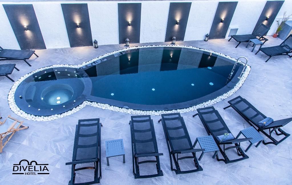 Het Divelia Hotel biedt aangename accommodatie in Perissa en toont de traditionele Cycladische architectuur. Gasten kunnen genieten van een buitenzwembad en andere voorzieningen. Alle negentien kamers beschikken over ruime slaapkamers, badkamers met douches en veranda's of balkons met zithoeken en uitzicht op de tuin of het dorp. De kamers zijn voorzien van individueel regelbare airconditioning, een telefoon met directe buitenlijn, een minikoelkast, koffie- en theefaciliteiten, een haardroger, een kluisje, satelliet-tv en gratis Wi-Fi. Het hotel ligt in het dorp Perissa, op 350 meter van het strand, op 3 kilometer van Ancient Thera, op 10, 5 kilometer van de haven van Santorini en op 13 kilometer van Santorini Thira Airport. De receptie is geopend van 08:00 tot 23:00 uur en gasten worden verzocht hun geschatte aankomsttijd door te geven.