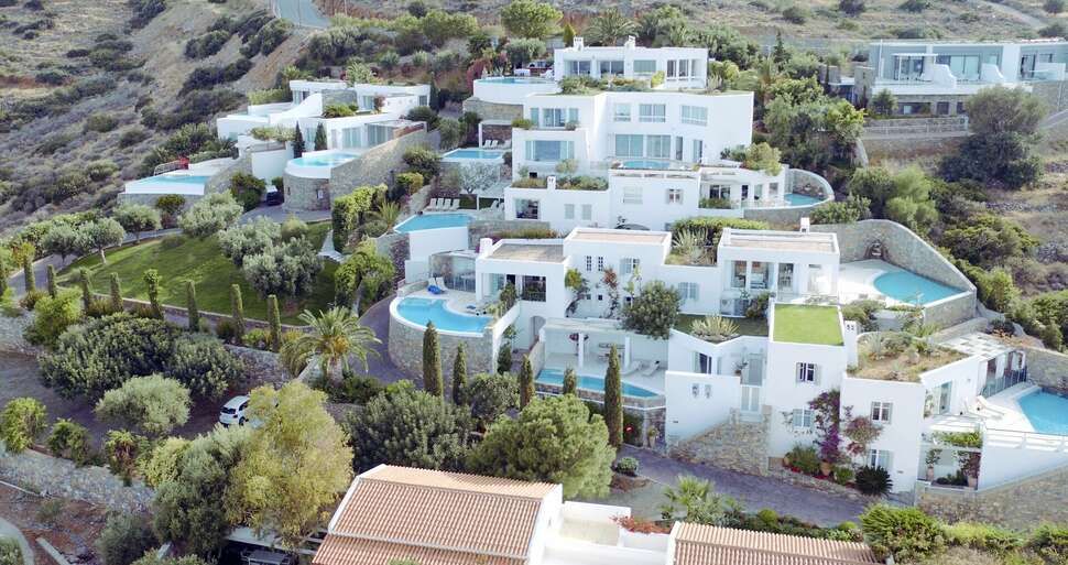 Dit bekroonde boetiek villa-hotel biedt 18 stijlvolle villa’s, elk met een privézwembad. Gasten kunnen ook kiezen uit 10 luxe suites of 5 massagesuites, eveneens met privézwembaden. De suites zijn ontworpen met een vredige harmonie in gedachten en zijn ideaal voor koppels en kleine gezinnen, met één of twee hoofdslaapkamers en toegang tot het hoofdzwembad. Villa’s bieden een tot vier slaapkamers, ruime woonkamers, volledig uitgeruste keukens, privézwembaden met bubbelbaden en een prachtig panoramisch uitzicht op zee. Sommige villa’s hebben ook privé-spa-faciliteiten zoals een fitnessruimte, sauna en stoombad (verwarming voor de spa-villazwembaden is beschikbaar tegen een toeslag). Een privéstrandclub, op vijf minuten rijden, biedt toegang tot de kristalheldere wateren van Crete, met een gratis dagelijkse shuttleservice. De eetgelegenheden omvatten een stijlvolle loungebar en dagelijks wordt het ontbijt geserveerd op het terras bij het hoofdzwembad. Gasten kunnen ook genieten van de Elixir Spa Gallery voor trainingen of ontspanning.
