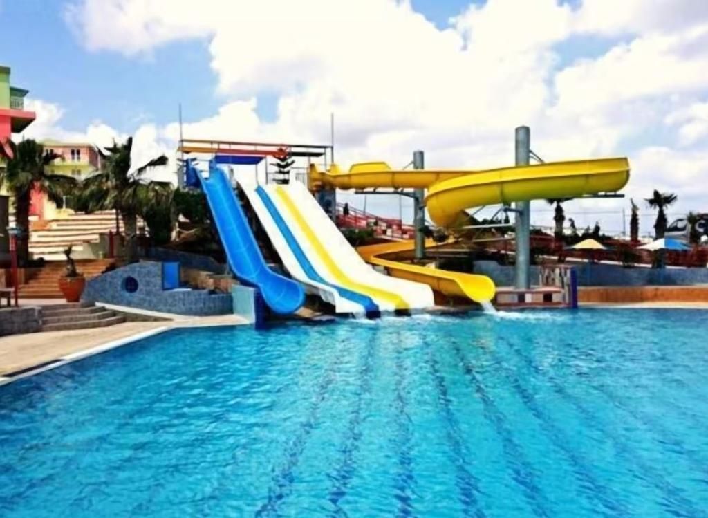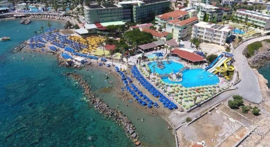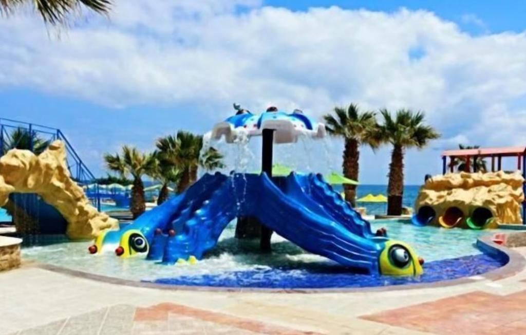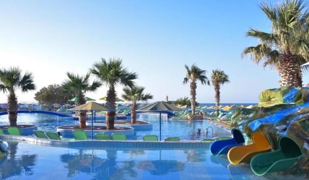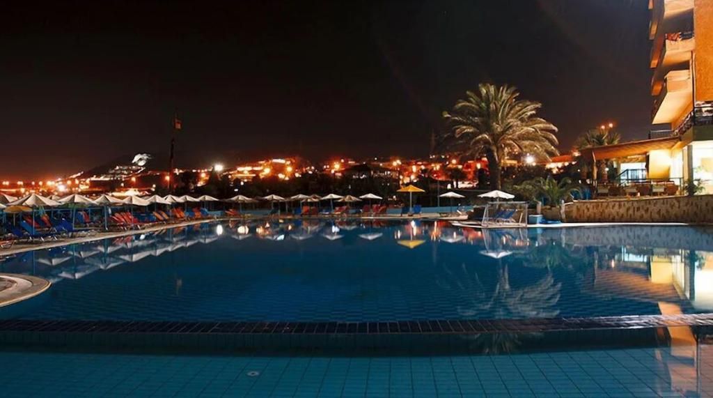 Dit hotel in dorpsstijl, gelegen nabij het vissersdorp Hersonissos aan de noordkust van Kreta, ligt op ongeveer 26 km ten oosten van de luchthaven en haven van Heraklion. De toplocatie biedt gasten gemakkelijke toegang tot een bruisend nachtleven, drukke bars en restaurants die heerlijke lokale gerechten serveren. De prachtige landschappen, stranden en historische bezienswaardigheden van Kreta, zoals de archeologische vindplaats van Gortys en het paleis van Phaestos, zijn gemakkelijk te bereiken. Het hotel biedt 740 moderne kamers, elk uitgerust met een kluisje (tegen betaling), telefoon, satelliet-tv, airconditioning, een bad of douche, toilet, föhn en een balkon of terras. De familiekamers bestaan uit een kleine slaapkamer met een eenpersoonsbed en twee extra slaapkamers met tweepersoonsbedden, elk met airconditioning en een tv. De tweepersoonskamers zijn voorzien van dezelfde voorzieningen. Airconditioning is gratis van 1 juli tot 31 augustus en brengt extra kosten met zich mee buiten deze data. Tot de eetgelegenheden behoort een gerenoveerd hoofdrestaurant centraal gelegen nabij het strand met een terras dat een prachtig uitzicht op de oceaan biedt. Er zijn ook drie bars beschikbaar, waaronder de Tropical Bar bij het waterpark (geopend van 10:00-22:00 uur), de Lobby Bar met een tv-hoek (20:00-22:00 uur) en een bar (14:00-00:00 uur) waar een ruime keuze aan cocktails en avondentertainment wordt aangeboden. Voor het gemak is er een souvenirwinkel, een minimarkt, een winkel met traditionele producten, een internationale tassen- en accessoireswinkel ('doca') en een bontwinkel. Ten slotte is er een goed uitgeruste conferentieruimte met airconditioning en 400 zitplaatsen beschikbaar voor zakelijke behoeften. Om veiligheidsredenen worden alle drankjes op locaties buiten geserveerd in plastic glazen.