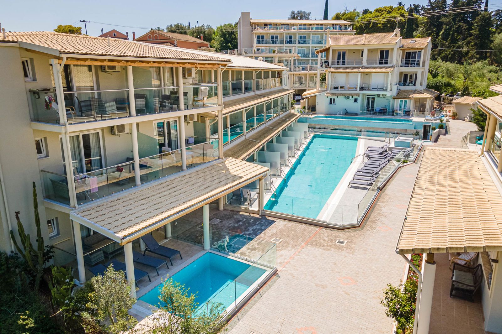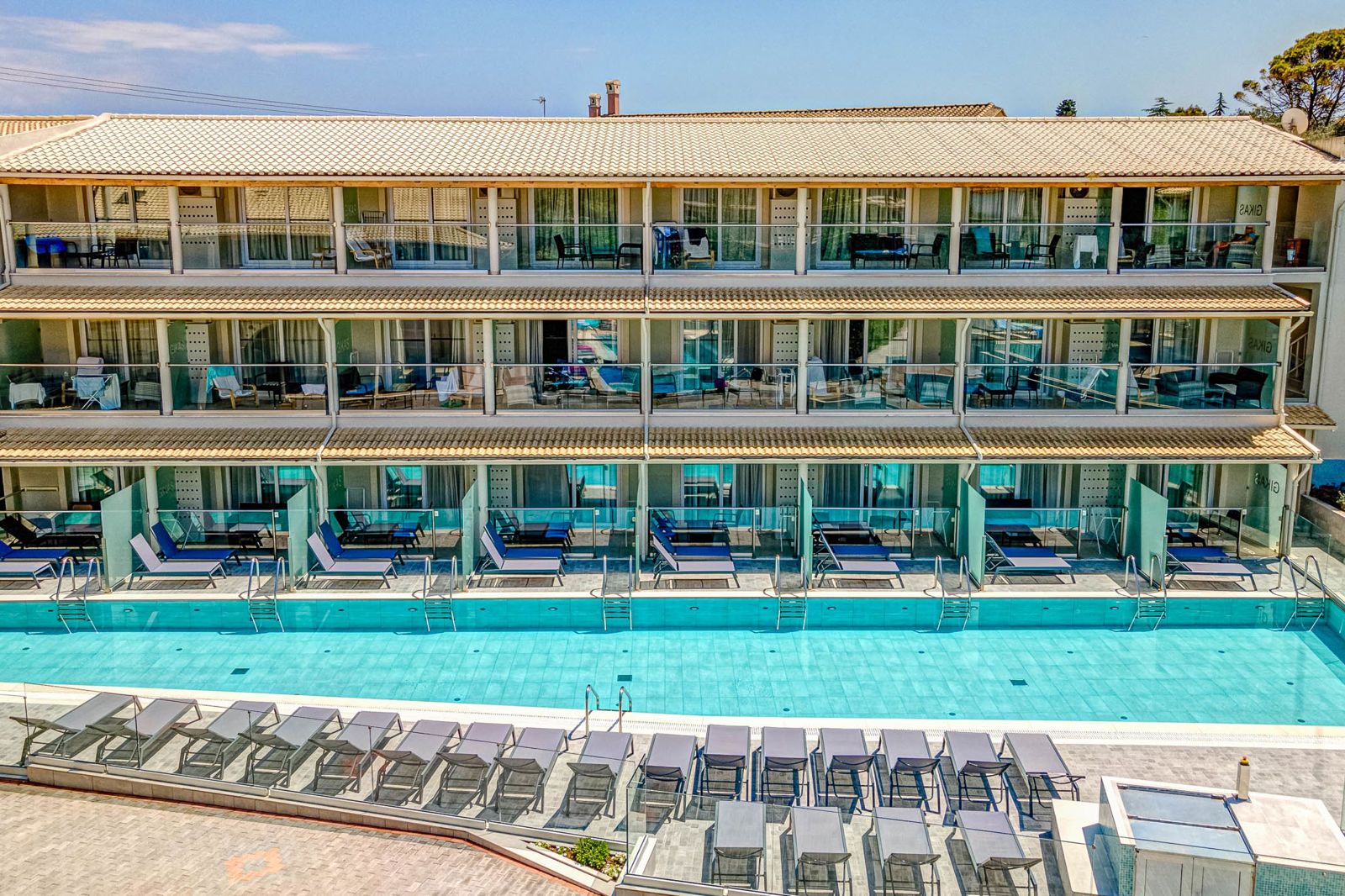 Palapart Gikas is rustig gelegen, op loopafstand van het gezellige centrum en het strand van Gouvia. Het appartementencomplex is in 2018 volledig gerenoveerd, wordt gerund door een gastvrije Griekse familie en er heerst een relaxte sfeer. Je vindt er een zwembad met kinderbad, een zonneterras en een pool bar waar je ook een maaltijd kunt bestellen. Vanuit Palapart Gikas kun je gemakkelijk Gouvia verkennen, maar ook de rest van het eiland Corfu is zeker een bezoek waard. Zomer Wanneer je tussen 01-05-2026 en 30-10-2026 in deze accommodatie verblijft, is onderstaande informatie van toepassing. Ligging Rustige ligging Openbaar strand op circa 250 meter Centrum van Gouvia op circa 500 meter Dichtstbijzijnde winkel op circa 500 meter Dichtstbijzijnde restaurant op circa 500 meter Dichtstbijzijnde bar op circa 500 meter Venetian Shipyard op circa 1 kilometer Corfu-Stad op circa 7 kilometer Bushalte op circa 200 meter Algemeen & faciliteiten 3 gebouwen Maximaal 3 verdiepingen 67 kamers Receptie 24 uur per dag Inchecken vanaf 15.00 uur Uitchecken tot 11.00 uur Laat uitchecken, ter plaatse aanvragen en op basis van beschikbaarheid tegen betaling Lift Niet in elk gebouw een lift Bagageruimte Wifi in alle openbare ruimtes Doktersservice tegen betaling op aanvraag Privé parkeergelegenheid Restaurants & bars Snackrestaurant tegen betaling Drinkgelegenheid Poolbar Activiteiten & ontspanning Fitness Zwembaden 4 buitenzwembaden Verwarmd tussen ca. vrijdag 1 mei 2026 en vrijdag 30 oktober 2026 Apart kindergedeelte in 2 buitenzwembaden Zonneterras Ligbedden met matrasjes Parasol Badhanddoekenservice gratis met borg Kinderfaciliteiten Babybedje als preferentie toe te voegen in het boekingsformulier gratis Verzorging Logies Hotelkamers 2-persoonskamer Comfort DJ Oppervlakte tussen 20 en 25 m² Airconditioning tegen betaling Kluisje tegen betaling Televisie Kitchenette Meerdere-pits kooktoestel Magnetron Oven Broodrooster Koelkast Badkamer douche, toilet en föhn Wifi Balkon (zitje) 2-persoonskamer Comfort (Panoramic View) DJ1 Oppervlakte tussen 20 en 25 m² Panoramisch uitzicht Airconditioning tegen betaling Kluisje tegen betaling Televisie Kitchenette Meerdere-pits kooktoestel Magnetron Oven Broodrooster Koelkast Badkamer douche, toilet en föhn Wifi Balkon of terras (zitje) 2-persoonskamer Comfort Voordeel DJE Speciaal tarief Locatie, formaat, uitzicht en/of faciliteiten kunnen afwijken ten opzichte van andere kamertypes Oppervlakte tussen 17 en 22 m² Geen uitzicht Airconditioning tegen betaling Kluisje tegen betaling Televisie Kitchenette Meerdere-pits kooktoestel Magnetron Oven Broodrooster Koelkast Badkamer bad of douche, toilet en föhn Wifi Balkon of terras (zitje) 2-persoonskamer Comfort Swimup DJZ Oppervlakte tussen 20 en 25 m² Zwembadzicht Airconditioning tegen betaling Kluisje tegen betaling Televisie Kitchenette Meerdere-pits kooktoestel Magnetron Oven Broodrooster Koelkast Badkamer douche, toilet en föhn Wifi Balkon of terras (zitje) Gemakkelijke toegang tot het gedeelde zwembad 2-persoonskamer Large (Comfort by the Pool) DL Oppervlakte tussen 25 en 30 m² Zwembadzicht Airconditioning tegen betaling Kluisje tegen betaling Televisie Kitchenette Meerdere-pits kooktoestel Magnetron Oven Broodrooster Koelkast Badkamer douche, toilet en föhn Wifi Balkon of terras (zitje) Familiekamer Comfort FJ Oppervlakte tussen 25 en 30 m² Zwembadzicht Airconditioning tegen betaling Kluisje tegen betaling Televisie Kitchenette Meerdere-pits kooktoestel Magnetron Oven Broodrooster Koelkast Badkamer bad of douche, toilet en föhn Wifi Balkon of terras (zitje) Junior suite Comfort JJ Oppervlakte tussen 50 en 55 m² Zwembadzicht Woonkamer Meerdere slaapkamers Airconditioning tegen betaling Kluisje tegen betaling Televisie Kitchenette Meerdere-pits kooktoestel Magnetron Oven Broodrooster Koelkast Badkamer bad of douche, toilet en föhn Wifi Balkon of terras (zitje) 2-kamerappartement 2A Oppervlakte van circa 50 m² Beperkt uitzicht Woonkamer Eén slaapkamer Airconditioning tegen betaling Kluisje tegen betaling Televisie Kitchenette Meerdere-pits kooktoestel Magnetron Oven Broodrooster Koelkast Badkamer douche, toilet en föhn Wifi Balkon of terras (zitje)