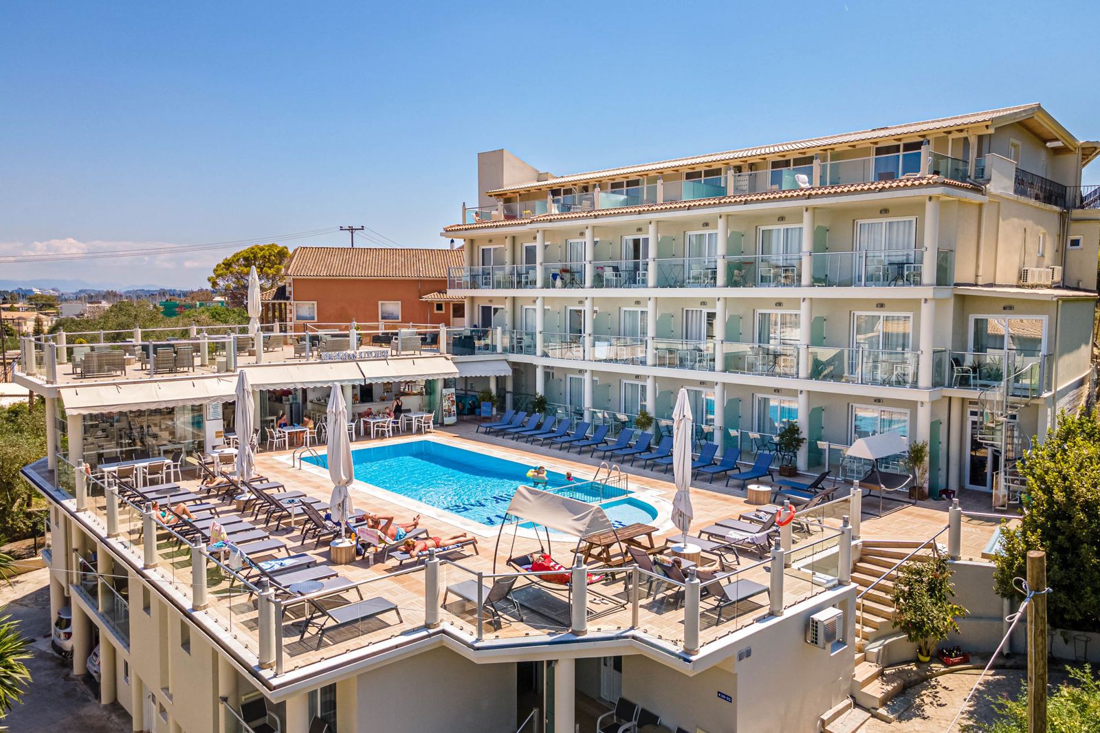 Palapart Gikas is rustig gelegen, op loopafstand van het gezellige centrum en het strand van Gouvia. Het appartementencomplex is in 2018 volledig gerenoveerd, wordt gerund door een gastvrije Griekse familie en er heerst een relaxte sfeer. Je vindt er een zwembad met kinderbad, een zonneterras en een pool bar waar je ook een maaltijd kunt bestellen. Vanuit Palapart Gikas kun je gemakkelijk Gouvia verkennen, maar ook de rest van het eiland Corfu is zeker een bezoek waard.