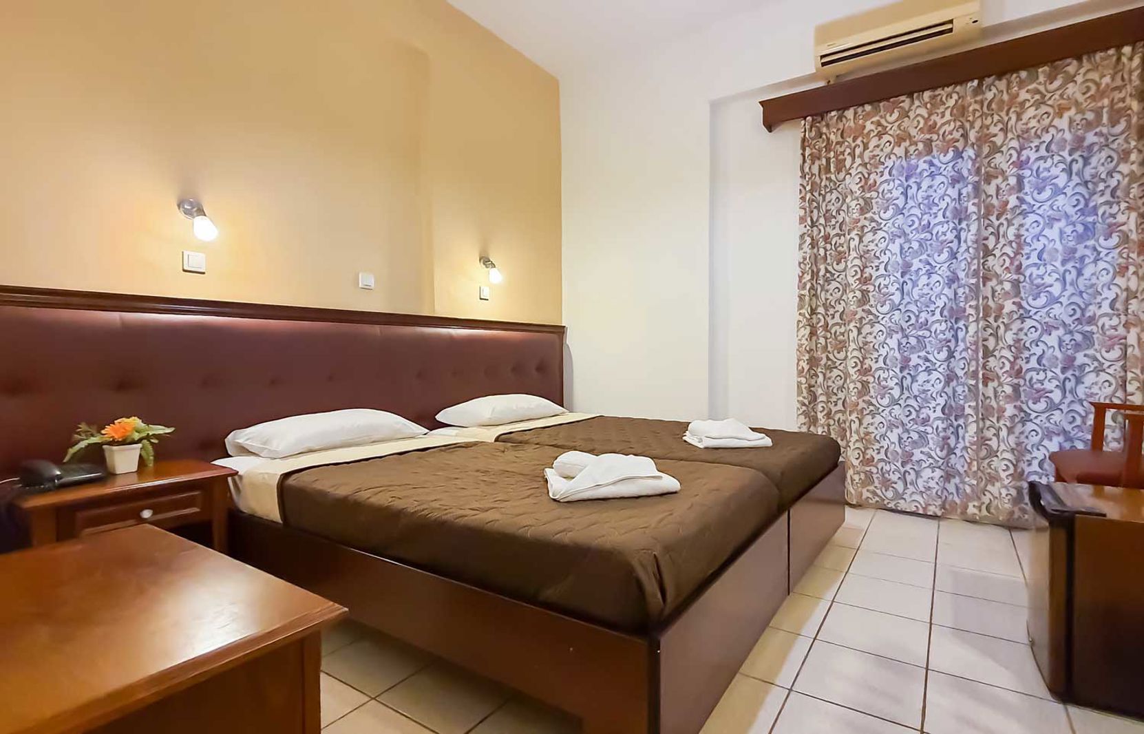 De standaardkamers (1-3 personen) van Gouvia Hotel zijn netjes en eenvoudig ingericht. De kamers zijn voorzien van een telefoon, satelliet televisie, kluisje (gratis), klein koelkastje (leeg, gratis te gebruiken) en airconditioning (individueel, tegen betaling). De badkamers beschikken over een douche, toilet en föhn. Alle kamers beschikken over een balkon met zitje. U kunt op uw kamer gratis gebruik maken van wifi.