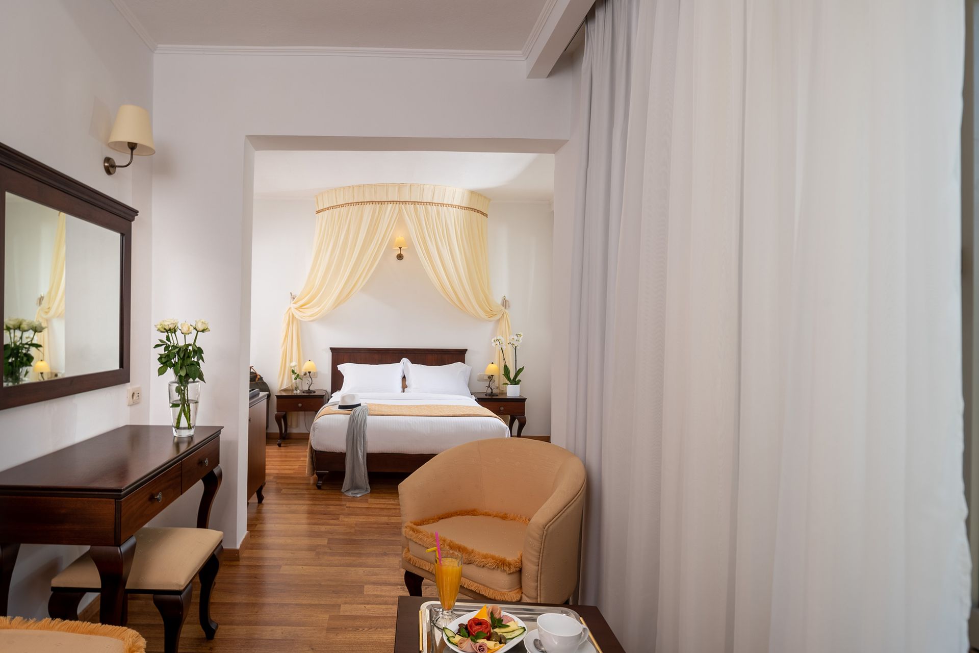 Het stadshotel heeft een perfecte atmosfeer voor gasten die stijlvolle ambiance appreciëren en ligt in Chania. Dit stadshotel werd in het jaar 1875 gebouwd. Het hotel beschikt over 3 suites en 46 tweepersoonskamers en over een lift. Meertalig personeel (Engels, Duits, Frans) bij de receptie in de ontvangsthal is hulpvaardig bij het in- en uitchecken. Service zoals een bagagedepot, een kluis en een wisselkantoor draagt bij tot een comfortabel verblijf. In de openbare ruimtes is Wi-Fi verkrijgbaar. De tourdesk biedt ondersteuning bij het boeken van excursies. Het hotel beschikt over een aantal voor gehandicapten toegankelijke voorzieningen. Rolstoelvriendelijke faciliteiten zijn beschikbaar. Voor gemoedelijke stemmingen zorgt een open haard. Een supermarkt en een souvenirwinkel en andere winkels zijn voorhanden om heerlijk te winkelen of te flaneren. Op het terrein van het verblijf bevinden zich een mooie tuin en een fraaie speelplaats. Tot de overige voorzieningen van het hotel behoren een tv-ruimte, een speelkamer en een bibliotheek. De gasten die met de auto komen, kunnen in een garage of op de parkeerplaats parkeren. Onder de beschikbare voorzieningen bevinden zich een 24-uurs beveiligingsdienst, een oppasservice, een kinderopvang, een autoverhuur, een medische dienst, een transferservice, een 24-uurs roomservice, een wekdienst, een wasservice, een kapper, een muntwasserette en een eigen shuttlebus. Voor de gasten staan fietsparkeerplekken gereed, bovendien is er een fietsverhuur. Gasten kunnen gratis van het dagblad gebruikmaken. Bij het zakendoen kan van het businesscenter gebruik worden gemaakt en staat een fax ter beschikking. In de kamers zijn airconditioning en verwarming voorhanden. Op het balkon of het privé-terras van de meeste kamers kunnen de gasten ontspannen en van de blik op zee genieten. De kamers beschikken over een tweepersoonsbed, een queensize bed, een kingsize bed of een slaapbank. Extra bedden kunnen worden aangevraagd. Bovendien zijn een kluis, een minibar en een bureau beschikbaar. Ook zijn een koelkast, een mini-koelkast en een thee-/koffiezetapparaat aanwezig. Verder kunnen de gasten gebruikmaken van een strijkset en een broekenpers. Bovendien zijn een telefoon met directe buitenlijn, een tv met satelliet-/kabelontvangst, een radio, een stopcontactadapter, een wekker en Wi-Fi (kosteloos) beschikbaar. In de wooneenheden staan pantoffels klaar voor de gasten. In de badkamer, van een douche en een bad voorzien, vinden de gasten een föhn en badjassen. Voor extra comfort in de badkamers zorgen cosmetische producten en een handdoekenset. Bovendien zijn rolstoelvriendelijke kamers met een barrièrevrije badkamer te boeken. Het hotel beschikt over gezinskamers en niet-rokerskamers. Het zwemcomplex met buitenbaden en zone voor kinderen is geschikt voor actieve ontspanning en aquarobicstrainingen. Comfortabele ligstoelen staan op het terras klaar voor gebruik. De whirlpool in de zone met zwembaden biedt de nodige rust en ontspanning. Het verblijf biedt een omvangrijk buitensportprogramma met fietsen/mountainbiken, tennis, golfen en paardrijden aan. Met jetskiën, waterfietsen, kanovaren, snorkelen en duiken voelen zich ook watersportliefhebbers helemaal op hun gemak. De gasten in het hotel beschikken over vele indoorsportmogelijkheden zoals bijvoorbeeld de fitnessstudio, biljart, bowling, yoga, gymnastiek en aerobics. In het hotel worden diverse wellnessaanbiedingen zoals bijvoorbeeld spa, sauna, een stoombad, massagebehandelingen en een zonnebank aangeboden. Een animatieprogramma, een miniclub en een disco garanderen volop recreatieplezier. Copyright GIATA 2004 – 2025. Multilingual, powered by www.giata.com for client no. 125551 Een restaurant, een eetzaal, een koffiehuis en een bar behoren tot de culinaire faciliteiten. Iedere dag worden een continentaal ontbijtbuffet en middagmaaltijd geserveerd. Dieetgerechten, glutenvrije maaltijden en kindermenu’s worden op aanvraag bereid. Daarnaast stelt het verblijf speciale menu’s beschikbaar. De volgende creditcards worden geaccepteerd: American Express, Visa, Diners Club en MasterCard.