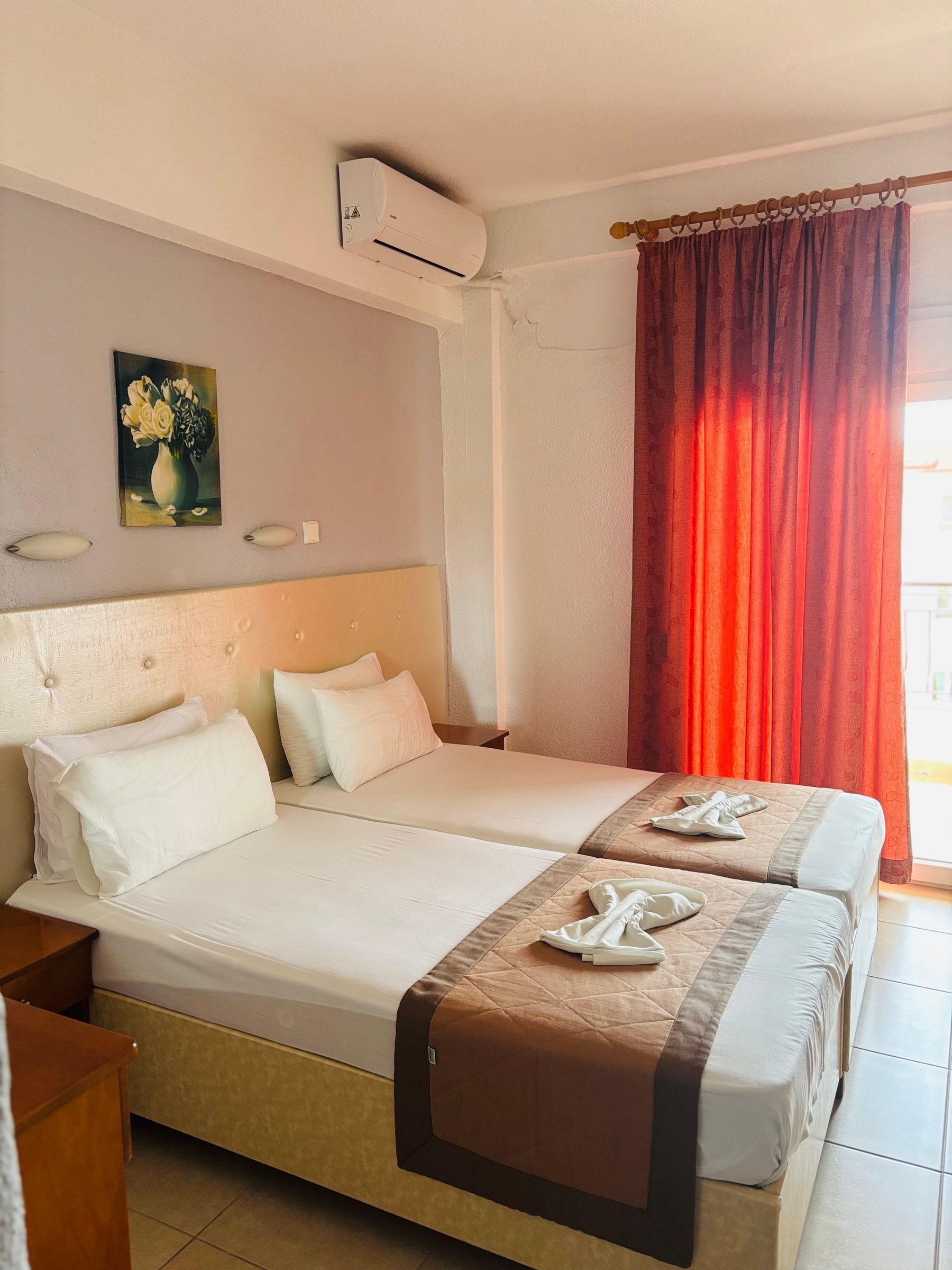 Algemene beschrijving:Het hotel Ilios hotel is gelegen op ca. 5 km van Kalithea (Kassandria ongeveer 10 km). Het dichtstbijzijnde strand ligt op ongeveer 800 m van het hotel. In de omgeving bereikt u verschillene bars en restaurants (300 m) en een supermarkt (300 m). Een bushalte (ca. 300 m) zorgt voor mobiliteit op vakantie. De luchthaven (SKG) is ongeveer 81 km van het hotel vandaan. Faciliteiten:Dit twee verdiepingen tellende hotel heeft in totaal 25 kamers. Verder vindt u in het hotel een receptie (check in vanaf 14:00 uur, uitchecken tot 12:00 uur), een lobby, airconditioning, een kluisje (gratis) evenals een parkeerplaats (gratis). Het gastronomisch gedeelte omvat een restaurant. De hotelbar biedt gasten verfrissende drankjes in een gezellige sfeer. De hotelgasten kunnen gratis gebruik maken van Wifi. Zwembad:Buiten bevindt zich een zwembad met een geïntegreerd kinderbad. Hier zijn parasols en ligstoelen gratis beschikbaar. Een bar bij het zwembad biedt gasten verfrissende drankjes. Verzorging:Ontbijt (07:30 – 10:00 uur) in buffetvorm. Aanvullende informatie:Voor bepaalde faciliteiten, voorzieningen of activiteiten kunnen extra kosten in rekening worden gebracht. Sommige diensten zijn afhankelijk van de plaatselijke klimatologische omstandigheden en van het seizoen. Het hotelpersoneel spreekt Engels. Geaccepteerde betalingsmiddelen: Euro/MasterCard en Visa. Standard Kamer:Uitgerust met 2 eenpersoonsbedden of tweepersoonsbed, opklapbed als extra bed, extra bed, babybedje (gratis), balkon, waterverhitter (gratis), internet (gratis), kluisje (tegen betaling) en flatscreen sat-tv, individueel verstelbare airco. Badkamer met douche. Grootte: 20 m². DriePersoons Standard Kamer:Uitgerust met 2 eenpersoonsbedden of tweepersoonsbed, opklapbed als extra bed, extra bed, babybedje (gratis), balkon, waterverhitter (gratis), internet (gratis), kluisje (tegen betaling) en flatscreen sat-tv, individueel verstelbare airco. Badkamer met douche. Grootte: 30 m². Algemene beschrijving:Het hotel Ilios hotel is gelegen op ca. 5 km van Kalithea (Kassandria ongeveer 10 km). Het dichtstbijzijnde strand ligt op ongeveer 800 m van het hotel. In de omgeving bereikt u verschillene bars en restaurants (300 m) en een supermarkt (300 m). Een bushalte (ca. 300 m) zorgt voor mobiliteit op vakantie. De luchthaven (SKG) is ongeveer 81 km van het hotel vandaan. Faciliteiten:Dit twee verdiepingen tellende hotel heeft in totaal 25 kamers. Verder vindt u in het hotel een receptie (check in vanaf 14:00 uur, uitchecken tot 12:00 uur), een lobby, airconditioning, een kluisje (gratis) evenals een parkeerplaats (gratis). Het gastronomisch gedeelte omvat een restaurant. De hotelbar biedt gasten verfrissende drankjes in een gezellige sfeer. De hotelgasten kunnen gratis gebruik maken van Wifi. Zwembad:Buiten bevindt zich een zwembad met een geïntegreerd kinderbad. Hier zijn parasols en ligstoelen gratis beschikbaar. Een bar bij het zwembad biedt gasten verfrissende drankjes. Verzorging:Ontbijt (07:30 – 10:00 uur) in buffetvorm. Aanvullende informatie:Voor bepaalde faciliteiten, voorzieningen of activiteiten kunnen extra kosten in rekening worden gebracht. Sommige diensten zijn afhankelijk van de plaatselijke klimatologische omstandigheden en van het seizoen. Het hotelpersoneel spreekt Engels. Geaccepteerde betalingsmiddelen: Euro/MasterCard en Visa. Standard Kamer:Uitgerust met 2 eenpersoonsbedden of tweepersoonsbed, opklapbed als extra bed, extra bed, babybedje (gratis), balkon, waterverhitter (gratis), internet (gratis), kluisje (tegen betaling) en flatscreen sat-tv, individueel verstelbare airco. Badkamer met douche. Grootte: 20 m². DriePersoons Standard Kamer:Uitgerust met 2 eenpersoonsbedden of tweepersoonsbed, opklapbed als extra bed, extra bed, babybedje (gratis), balkon, waterverhitter (gratis), internet (gratis), kluisje (tegen betaling) en flatscreen sat-tv, individueel verstelbare airco. Badkamer met douche. Grootte: 30 m².