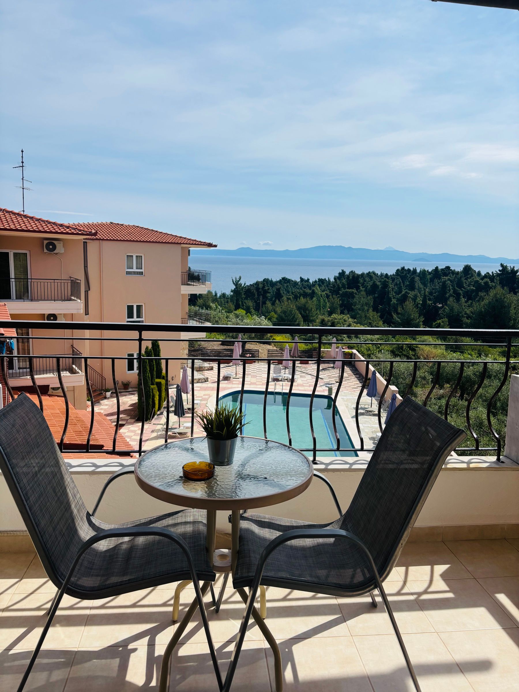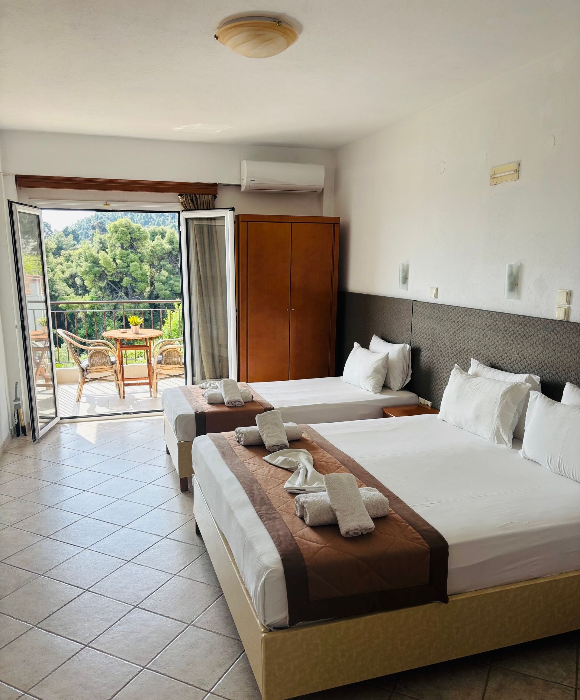 Algemene beschrijving:Het hotel Ilios hotel is gelegen op ca. 5 km van Kalithea (Kassandria ongeveer 10 km). Het dichtstbijzijnde strand ligt op ongeveer 800 m van het hotel. In de omgeving bereikt u verschillene bars en restaurants (300 m) en een supermarkt (300 m). Een bushalte (ca. 300 m) zorgt voor mobiliteit op vakantie. De luchthaven (SKG) is ongeveer 81 km van het hotel vandaan. Faciliteiten:Dit twee verdiepingen tellende hotel heeft in totaal 25 kamers. Verder vindt u in het hotel een receptie (check in vanaf 14:00 uur, uitchecken tot 12:00 uur), een lobby, airconditioning, een kluisje (gratis) evenals een parkeerplaats (gratis). Het gastronomisch gedeelte omvat een restaurant. De hotelbar biedt gasten verfrissende drankjes in een gezellige sfeer. De hotelgasten kunnen gratis gebruik maken van Wifi. Zwembad:Buiten bevindt zich een zwembad met een geïntegreerd kinderbad. Hier zijn parasols en ligstoelen gratis beschikbaar. Een bar bij het zwembad biedt gasten verfrissende drankjes. Verzorging:Ontbijt (07:30 - 10:00 uur) in buffetvorm. Aanvullende informatie:Voor bepaalde faciliteiten, voorzieningen of activiteiten kunnen extra kosten in rekening worden gebracht. Sommige diensten zijn afhankelijk van de plaatselijke klimatologische omstandigheden en van het seizoen. Het hotelpersoneel spreekt Engels. Geaccepteerde betalingsmiddelen: Euro/MasterCard en Visa. Standard Kamer:Uitgerust met 2 eenpersoonsbedden of tweepersoonsbed, opklapbed als extra bed, extra bed, babybedje (gratis), balkon, waterverhitter (gratis), internet (gratis), kluisje (tegen betaling) en flatscreen sat-tv, individueel verstelbare airco. Badkamer met douche. Grootte: 20 m². DriePersoons Standard Kamer:Uitgerust met 2 eenpersoonsbedden of tweepersoonsbed, opklapbed als extra bed, extra bed, babybedje (gratis), balkon, waterverhitter (gratis), internet (gratis), kluisje (tegen betaling) en flatscreen sat-tv, individueel verstelbare airco. Badkamer met douche. Grootte: 30 m².