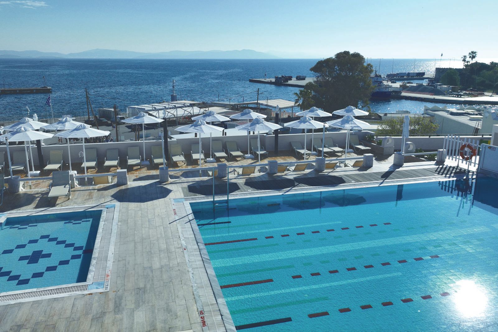 Nergens op Kos voel je de sfeer van de stad zó goed als bij Kosta Palace Hotel. Direct aan de haven van Kos-Stad, tussen de traditionele vissersboten en gezellige terrasjes, geniet je hier van een toplocatie. Alles ligt op loopafstand: het centrum, het strand van Lambi en tal van leuke restaurants en winkels. Op het dak van het hotel wacht een zwembad met misschien wel het mooiste uitzicht van de stad. Dobber in het water met zicht op het oude kasteel en zie hoe de zon langzaam zakt achter de haven. Ook voor een drankje of een goed boek is dit de perfecte plek om even helemaal niets te hoeven. De kamers zijn comfortabel, precies wat je nodig hebt na een dag in de zon of een avondje uit. Of je nu komt om te relaxen of cultuur te snuiven, bij Kosta Palace Hotel zit je midden in het bruisende hart van Kos met alles binnen handbereik.