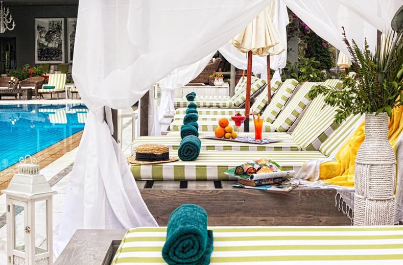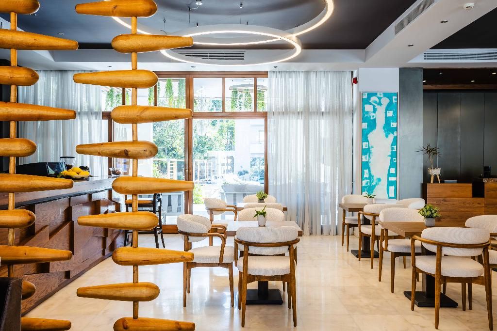 Het hotel ligt op circa 1 km van het strand, centraal in Skiathos (stad).