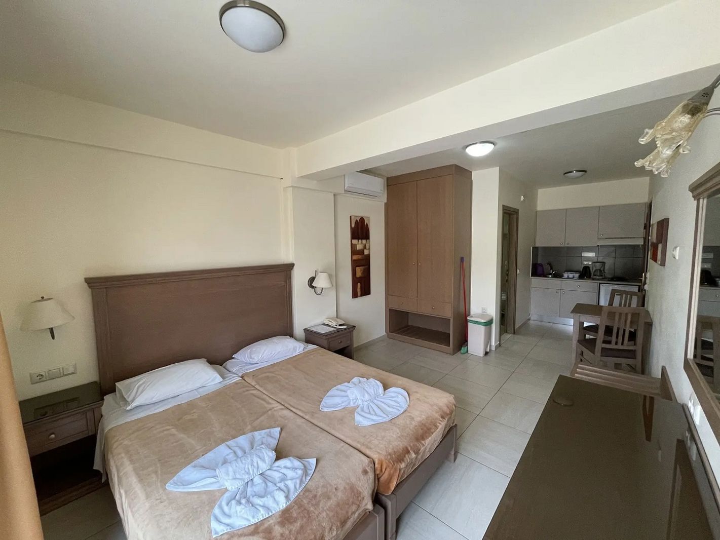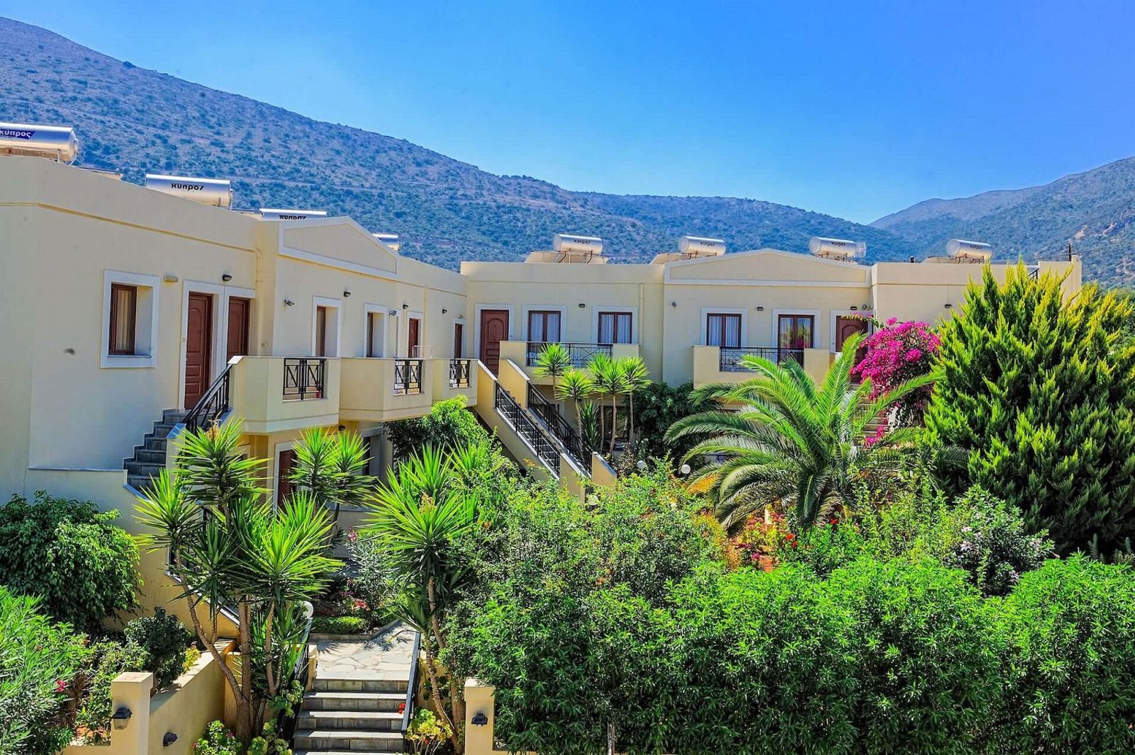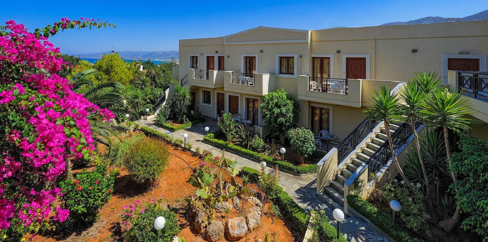 Maria Lambis Apartments is een gezellig appartementencomplex op Kreta, gelegen op loopafstand van het strand. Dit hotel biedt comfortabele kamers en een zwembad waar je kunt ontspannen in de zon. Het restaurant serveert heerlijke gerechten, zodat je optimaal kunt genieten van de Griekse keuken. Het levendige centrum van Stalis ligt op slechts 300 meter afstand, waar je diverse tavernes, bars en winkeltjes kunt vinden. Hier kun je zowel ontspannen als het Griekse nachtleven verkennen. Stalis is een charmante badplaats aan de noordkust van Kreta, geliefd om zijn lange zandstranden en ontspannen sfeer. Het dorp biedt een ideale mix van rust en gezelligheid, waardoor het een perfecte bestemming is voor zowel gezinnen als stelletjes. Naast het strand kun je in de omgeving van Stalis genieten van wandelingen in de natuur, oude dorpjes bezoeken of een excursie maken naar het bruisende Malia of de historische stad Heraklion. Het is een uitstekende uitvalsbasis om het prachtige eiland Kreta verder te verkennen! Ligging Maria Lambis Apartments Op loopafstand van het strand Het centrum van Stalida op ca. 300 meter Dichtsbijzijnde winkeltjes, restaurants en bars op ca. 150 meter Aquaworld Aquarium op ca. 3,8 kilometer Faciliteiten 24-uursreceptie Bagageruimte Tuin Wifi Roomservice* Wasservice* Privé parkeergelegenheid *Tegen betaling Restaurants & bars 1 buffetrestaurant Zwembaden 1 buitenzwembad Zonneterras Ligbedden en parasols gratis (zwembad) Hotelkamers Standaardkamer (1-3 personen) Ca. 20 m² Telefoon* Airconditioning* Televisie Koelkastje Kluisje* Wifi* Douche Toilet Föhn Balkon of terras met zitje Tuinzicht Tegen een meerprijs boekbaar als Superior kamer (1-2 personen) *Tegen betaling Studio (2-3 personen) Ca. 30 m² Kitchenette Koffie- en theefaciliteiten Koelkast Dezelfde faciliteiten als de standaardkamer Tegen een meerprijs boekbaar als Superior Studio (2 personen) 2-kamerappartement (1-4 personen) Ca. 45 m² Aparte woonruimte en aparte slaapkamer Kitchenette met kookplaat en koffiezetapparaat Dezelfde faciliteiten als de standaardkamer Activiteiten & ontspanning Biljart* Golf* Duiken* Snorkelen* Paardrijden* Massages* *Tegen betaling Verzorging Zomer: Maria Lambis Apartments Verblijf o.b.v. Logies Tegen een meerprijs verblijf je o.b.v. Logies & Ontbijt: Ontbijt in buffetvorm