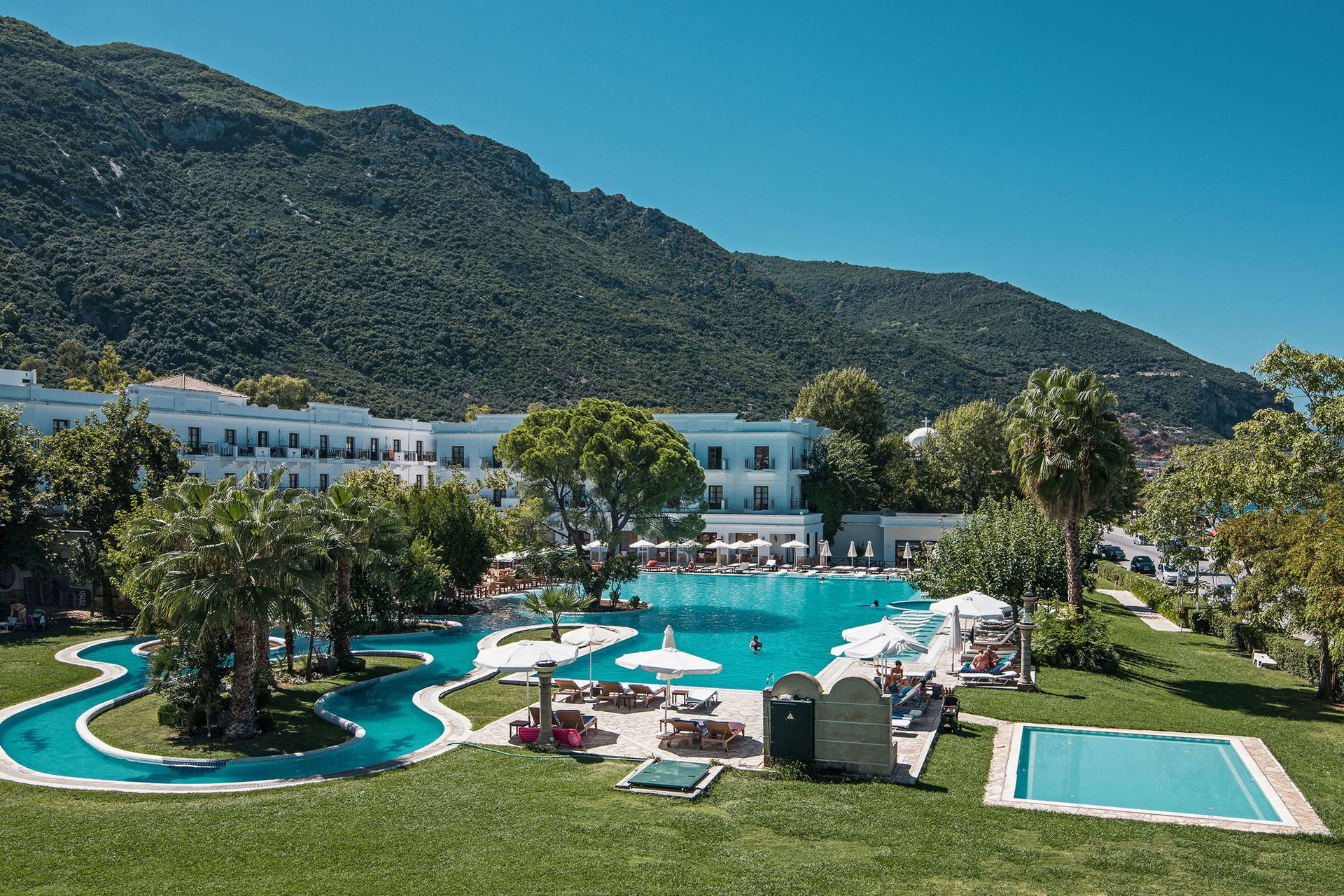 Mitsis Galini Wellness Spa & Resort van Mitsis Hotels ligt 150 km ten noorden van Athene, in Kamena Vourla, een badplaats die bekend staat om zijn thermale bronnen. Het resort is gebouwd op een prachtige locatie met eucalyptusbomen en een adembenemend uitzicht op zee. Het vijfsterren Mitsis Galini Wellness Spa & Resort is het grootste wellnesshotel Spa op de Balkan, de ideale keuze voor wie het hele jaar door op zoek is naar ontspanning en wellness. Geniet van gratis gebruik van alle luxueuze faciliteiten en uitstekende services die Galini Wellness Spa & Resort te bieden heeft en profiteer van de speciale behandeling die is voorbereid voor ons All-Inclusive Plan* speciaal voor gasten. Het resort biedt 224 kamers die allemaal zijn uitgerust met het comfort van een vijfsterrenhotel, prachtig ingericht en met uitzicht over de glinsterende blauwe zee en het natuurlijke groene landschap. Er is een verscheidenheid aan keuzes die wachten op de gasten van het resort om aan al hun behoeften te voldoen, zoals: een buitenzwembad met zoet water, een buitenzwembad met thermaal water, een breed scala aan sporten en natuurlijk de 3. 000 m² thermaalwater Spa. De Mitsis Galini Spa biedt diensten zoals: sauna, Rasul, Hammam, bubbelbad, een verscheidenheid aan verschillende massages, gezichts- en lichaamsbehandelingen, speciale behandelingen met thermaal water, een kapsalon en gepersonaliseerde programma’s voor gewichtsverlies en verjonging. Er is ook een volledig uitgeruste fitnessruimte voor uw dagelijkse trainingsroutine. Mitsis Galini is een ideale locatie voor zakelijke of andere evenementen, met vier conferentiezalen, elk met een capaciteit van 40 tot 330 personen.