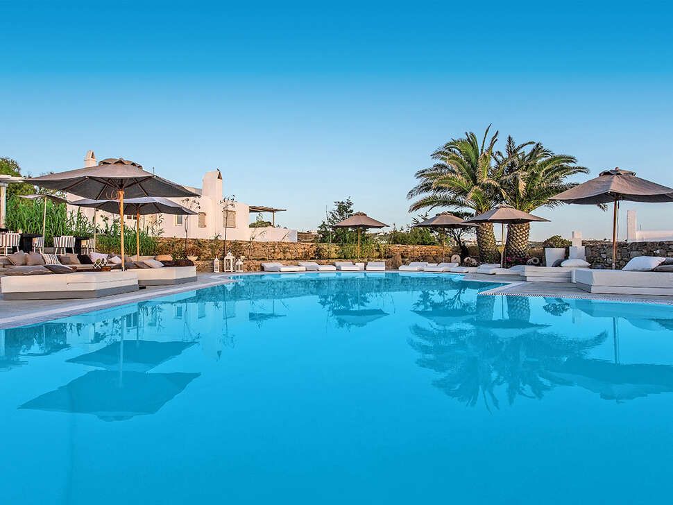 Ostraco Suites, een trots lid van Les Collectionneurs, ligt in Mykonos, Griekenland, op slechts 700 meter van het stadscentrum. Gelegen op 6. 000 vierkante meter en omgeven door paden en tuinen, biedt dit hotel een rustig toevluchtsoord. Gerenoveerd in 2018, combineert het ontwerp traditionele Mykonische architectuur met moderne accenten, waardoor er 22 uniek ingerichte kamers en suites zijn ontstaan. Sommige suites beschikken over een jacuzzi in de buitenlucht of een privézwembad. Gasten kunnen genieten van een charmante receptie met 24-uurs service, een ontbijtzaal en voorzieningen zoals een wasservice, twee kapellen en luchthaventransfers. Wi-Fi, toegang tot de garage en roomservice zijn ook beschikbaar. Elke luxe kamer beschikt over individueel regelbare airconditioning, een smart-tv met satellietzenders, internettoegang, een telefoon met directe buitenlijn, een minibar en een eigen balkon of terras. De en suite badkamers zijn uitgerust met een bad of een regendouche, een haardroger en luxe toiletartikelen. Het hotel beschikt ook over een zwembad, een bar aan het zwembad, een gastronomisch restaurant, een buitenlounge met een schaakbord en een zonneterras. Massages kunnen tegen een toeslag worden geboekt.