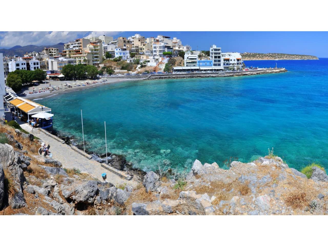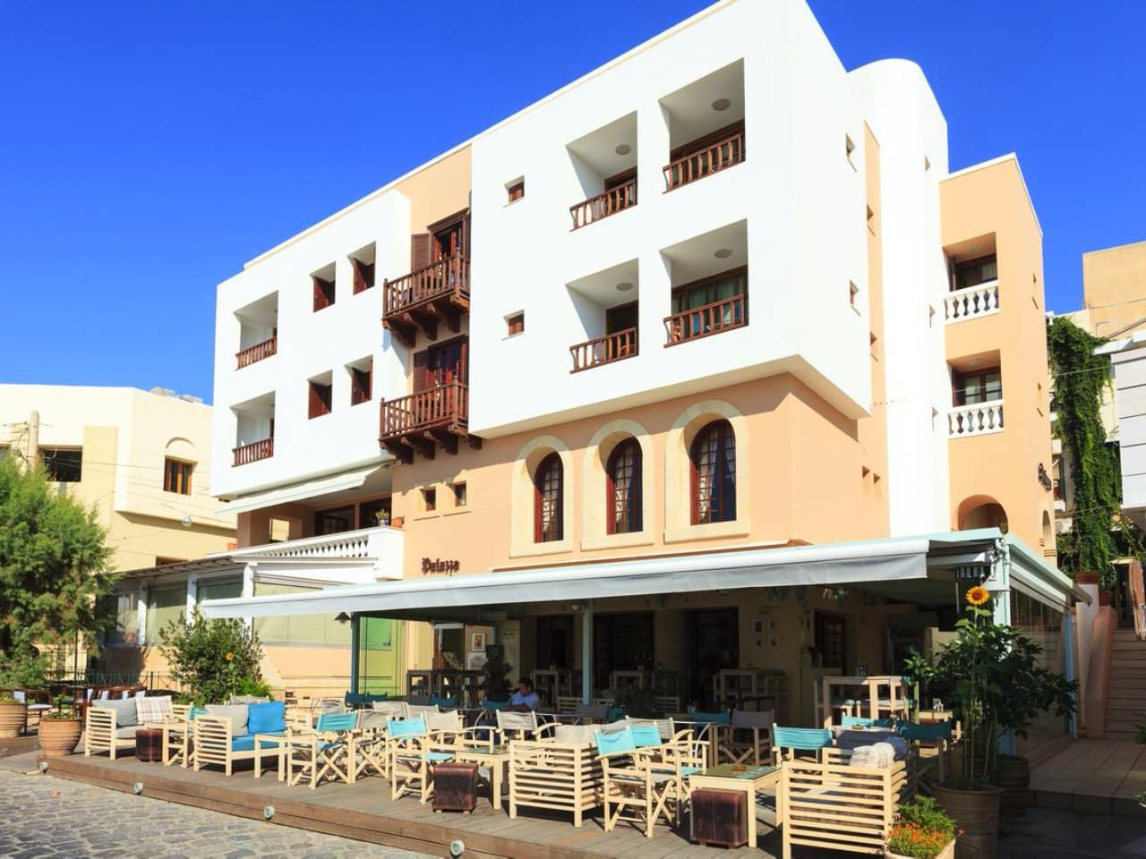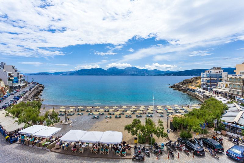 Het appartementenhotel ligt direct aan het strand, centraal in Agios Nikolaos.