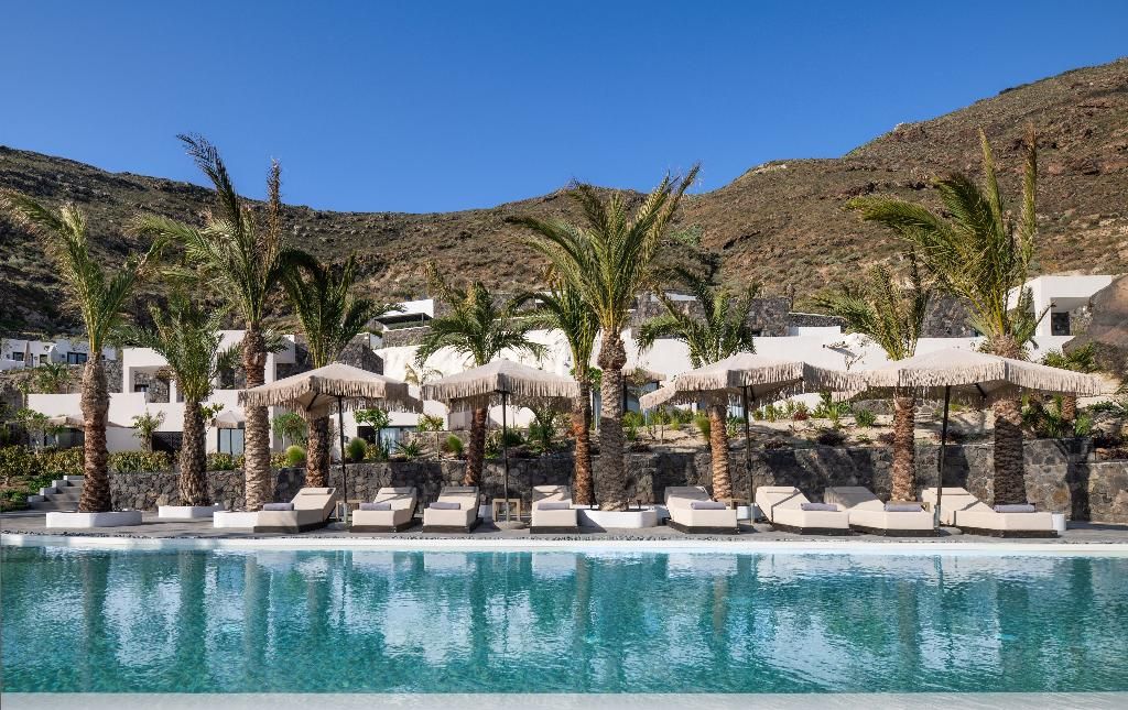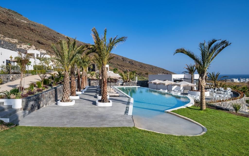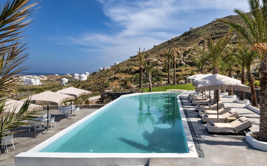 In Imerovigli, Santorini, liggen eenentwintig suites in diverse groottes, waarvan sommige met een privézwembad. Gasten kunnen genieten van de voorzieningen van hun suite, zonnebaden, wegdromen bij een prachtig uitzicht op zee en adembenemende zonsopgangen bewonderen. Palm Island Suites is gebouwd met natuurlijke materialen, trouw aan de architectuur van het eiland, en blendt harmonieus met de omgeving. De elegante, ruime suites beschikken over een modern interieur en bieden alle comfort die nodig is voor een ontspannen en zorgeloze vakantie op Santorini. De suites bieden plaats aan twee tot vijf gasten, hebben een panoramisch uitzicht op zee en sommige suites bieden de extra luxe van een privézwembad.