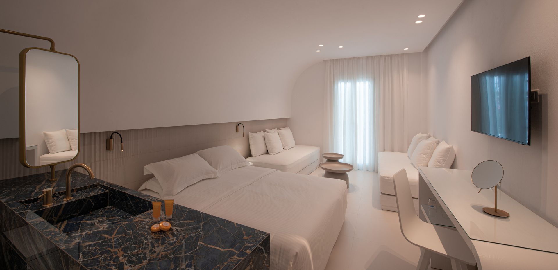 Het Petasos Chic Hotel, uitzonderlijk gelegen op slechts 2 minuten lopen van Mykonos-stad, ligt op slechts 400 meter van de oude haven. Het biedt een terras met panoramisch uitzicht op de stad, een transferservice tegen betaling en WiFi. Het Petasos Chic Hotel heeft smaakvol ingerichte kamers, waarvan de meeste uitkijken over de stad Mykonos. De accommodaties in Hotel Petasos zijn voorzien van een minibar, een kluisje, airconditioning en een tv met internationale zenders. Gasten krijgen gratis retourritten naar het Petasos Beach Resort & Spa, waar ze kunnen genieten van cocktails in het poolrestaurant of gebruik kunnen maken van de recreatieve faciliteiten. De bevoorrechte locatie van het hotel is ideaal voor wie ontspanning wil combineren met het bekende nachtleven van Mykonos. De luchthaven ligt op 4 km afstand.