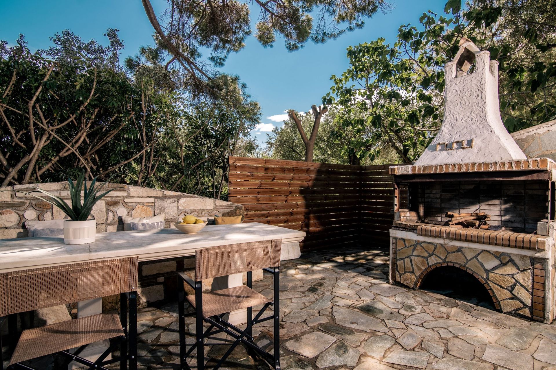 MachairadoOmgeven door groen en met een rustige ligging is Pine Tree Villa een fantastische plek voor gasten die op zoek zijn naar een heerlijk ontspannen vakantiebeleving. De villa is authentiek maar modern ingericht. Een van de hoogtepunten van Pine Tree Villa is de buitenruimte: een prachtig privézwembad, omringd door een fijn zonneterras met ligstoelen, parasols en prachtige palmbomen. Dé ideale plek om te ontspannen, te zonnebaden en te genieten een van verfrissende duik in het water. Naast de villa vind je een terras met een comfortabel zitje en een eettafel, perfect om buiten te dineren of om te ontspannen met een goed boek.