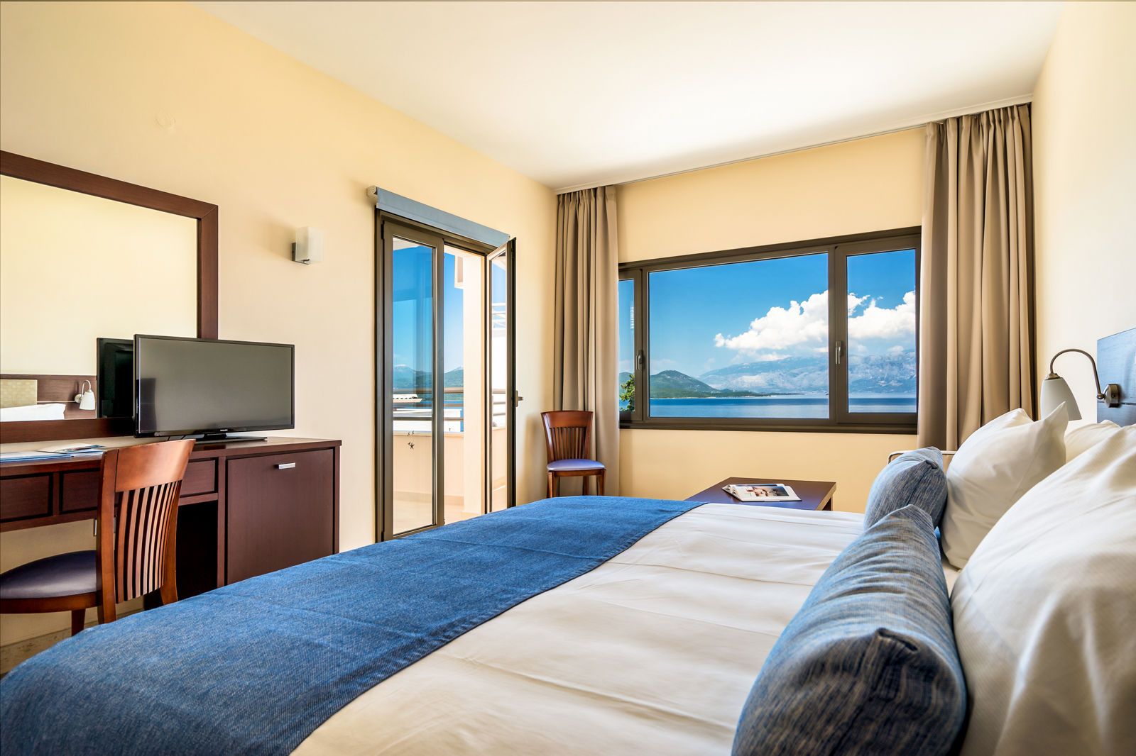 Ben je op zoek naar een vakantie met je partner, een vriend of vriendin of het hele gezin? Zoek dan niet verder, want Porto Galini is jouw volgende vakantiebestemming. Je verblijft in een accommodatie waar het je aan niets ontbreekt. Ga je voor een fijne standaardkamer of kies je voor meer luxe in een superiorkamer of suite? Plof lekker neer bij het zwembad of op het strand, eet een hapje in het buffetrestaurant of de twee à-la-carterestaurants en maak je keuze uit diverse sportfaciliteiten. Ook relaxen in het binnenzwembad, de sauna of hamam behoort tot de mogelijkheden. Er is keuze genoeg. En wat denk je van het adembenemende decor van frisgroene heuvels, de mediterrane tuin vol olijfbomen en bougainville én een helderblauwe zee? Als dat geen vakantie is… TIP: boek deze vakantie als Fly & Go Gemak voorop: pakketreis met vlucht + deze accommodatie + huurauto De verzekering voor je auto is geregeld Vrijheid en avontuur: ontdek in je eigen tempo je vakantiebestemming Bekijk deze Fly & Go vakantie Zomer Wanneer je tussen 09-05-2026 en 05-10-2026 in deze accommodatie verblijft, is onderstaande informatie van toepassing. Ligging Gelegen op een heuvel Gelegen aan het privéstrand Kiezelstrand Ligbedden met matrasjes Parasol Dichtstbijzijnde winkel op circa 5 kilometer Dichtstbijzijnde restaurant op circa 2 kilometer Dichtstbijzijnde bar op circa 5 kilometer Nidri op circa 5 kilometer Algemeen & faciliteiten 9 gebouwen Maximaal 1 verdieping 139 kamers Receptie 24 uur per dag Lobby 3 liften Bagageruimte Wifi in diverse openbare ruimtes Winkel (minimarkt) Wasservice tegen betaling Tuin Privé parkeergelegenheid Restaurants & bars Buffetrestaurant 2 à-la-carterestaurants Roomservice tegen betaling 2 drinkgelegenheden Lobbybar Poolbar Activiteiten & ontspanning Beachvolleybal Biljart tegen betaling Kanoën tegen betaling Suppen tegen betaling Tafeltennis Tafelvoetbal tegen betaling Tennis Watersporten Spa Center Sauna tegen betaling Hamam tegen betaling Bubbelbad binnen tegen betaling Massages tegen betaling Schoonheidsbehandelingen tegen betaling Fitnessruimte Gameroom Livemuziek 2 keer per week Zwembaden 2 buitenzwembaden Zoetwater 2 buitenzwembaden voor kinderen Zoetwater Binnenzwembad toegang tegen betaling Zonneterras Ligbedden met matrasjes Parasol Badhanddoekenservice Kinderfaciliteiten Mini club (4-12 jaar) 7 keer per week Buitenspeeltuin Babybedje op aanvraag via ons contact center Verzorging Logies & Ontbijt Ontbijt in buffetvorm Halfpension Ontbijt in buffetvorm Diner in buffetvorm Goed om te weten Duurzaamheidslabel(s): Green Key Hotelkamers 2-persoonskamer Standaard (Classic) DZ Oppervlakte tussen 15 en 25 m² Tuinzicht Airconditioning Kluisje Televisie Telefoon tegen betaling Eet- en drinkfaciliteiten Koffie- en theefaciliteiten Minibar tegen betaling Badkamer met douche, toilet, föhn en badslippers Wifi Balkon of terras (zitje) 2-persoonskamer Standaard Zijzeezicht (Classic) DZI Oppervlakte tussen 15 en 25 m² Zijzeezicht Airconditioning Kluisje Televisie Telefoon tegen betaling Eet- en drinkfaciliteiten Koffie- en theefaciliteiten Minibar tegen betaling Badkamer met douche, toilet, föhn en badslippers Wifi Balkon of terras (zitje) 2-persoonskamer Superior DS Oppervlakte tussen 20 en 28 m² Tuinzicht Airconditioning Kluisje Televisie Telefoon tegen betaling Eet- en drinkfaciliteiten Koffie- en theefaciliteiten Minibar tegen betaling Badkamer met bad of douche, toilet, föhn en badslippers Wifi Balkon of terras (zitje) 2-persoonskamer Superior Zijzeezicht DSI Oppervlakte tussen 20 en 28 m² Zijzeezicht Airconditioning Kluisje Televisie Telefoon tegen betaling Eet- en drinkfaciliteiten Koffie- en theefaciliteiten Minibar tegen betaling Badkamer met bad of douche, toilet, föhn en badslippers Wifi Balkon of terras (zitje) Suite Standaard UZ Oppervlakte tussen 35 en 45 m² Woon-/slaapkamer Eén slaapkamer Airconditioning Kluisje Satelliettelevisie Telefoon tegen betaling Eet- en drinkfaciliteiten Koffie- en theefaciliteiten Minibar tegen betaling Badkamer met bad en douche, toilet, föhn en badslippers Wifi Balkon of terras (zitje) Suite Standaard Zeezicht UZM Oppervlakte tussen 35 en 45 m² Zeezicht Woon-/slaapkamer Eén slaapkamer Airconditioning Kluisje Satelliettelevisie Telefoon tegen betaling Eet- en drinkfaciliteiten Koffie- en theefaciliteiten Minibar tegen betaling Badkamer met bad en douche, toilet, föhn en badslippers Wifi Balkon of terras (zitje)
