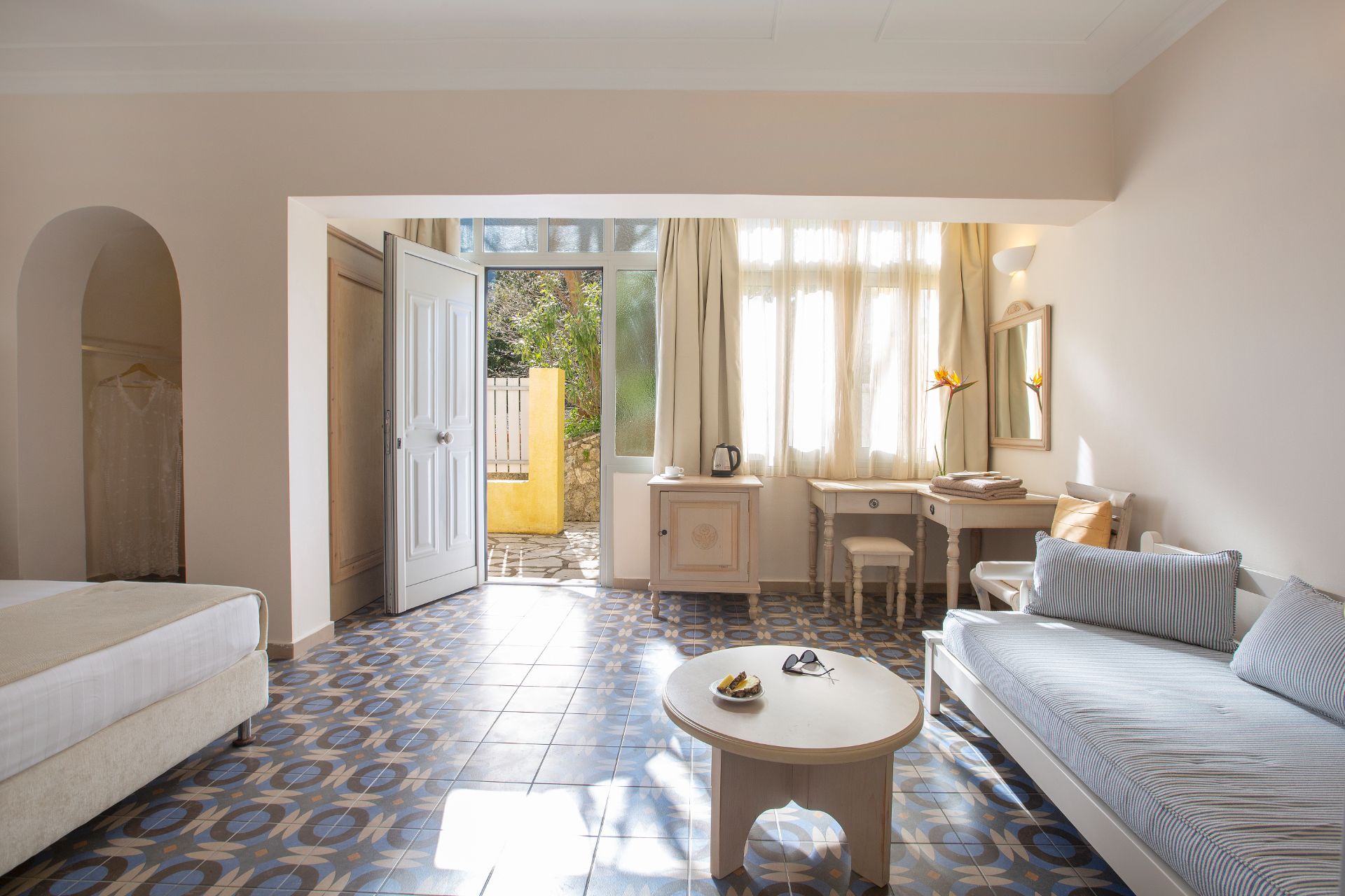 Dit charmante appartementencomplex ligt in het schilderachtige dorpje Nikiana, een rustige badplaats aan de oostkust van het eiland Lefkada, met een ruime keuze aan eet- en uitgaansgelegenheden. Het biedt een panoramisch uitzicht over de Ionische Zee en de omliggende eilanden. De toplocatie dicht bij twee kleine, afgelegen stranden maakt dit complex de ideale plek om te genieten van een unieke vakantie-ervaring van absolute rust en stilte. Het complex bestaat uit een reeks appartementen die alle benodigde diensten en voorzieningen bieden zodat gasten zich helemaal thuis voelen. De meest veeleisende reizigers kunnen kiezen voor de luxe suites, allemaal modern en licht. De faciliteiten omvatten een buitenzwembad, een bubbelbad en een kinderbad met een speeltuin, waar de jongere gasten zich kunnen uitleven. Het restaurant serveert heerlijke gegrilde Griekse gerechten, bereid met lokale producten, en de snackbar aan het zwembad biedt drankjes en lekkernijen.