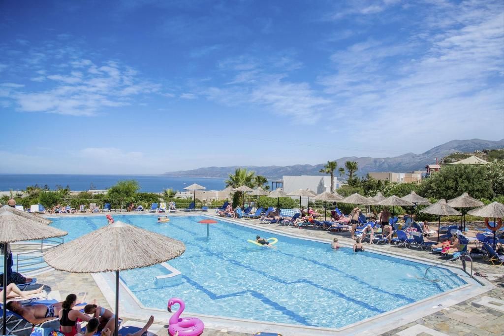 Het gerenoveerde hotel Semiramis Village is gelegen op een prachtige locatie en is een traditioneel Kretenzisch hotel met een panoramisch uitzicht over de eindeloze blauwe Egeïsche Zee. Het beschikt over een verscheidenheid aan diensten en voorzieningen, zoals een ruim zwembad. Het volgende strand ligt op slechts een steenworp afstand en het centrum van Chersonissos met zijn vele winkels, bars, restaurants, tavernes en uitgaansgelegenheden is gemakkelijk bereikbaar. Dit hotel is een geweldige plek voor koppels of gezinnen met kinderen die een strandvakantie willen doorbrengen onder de mediterrane zon.