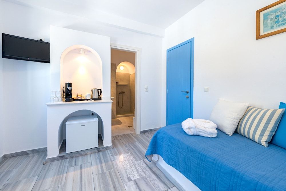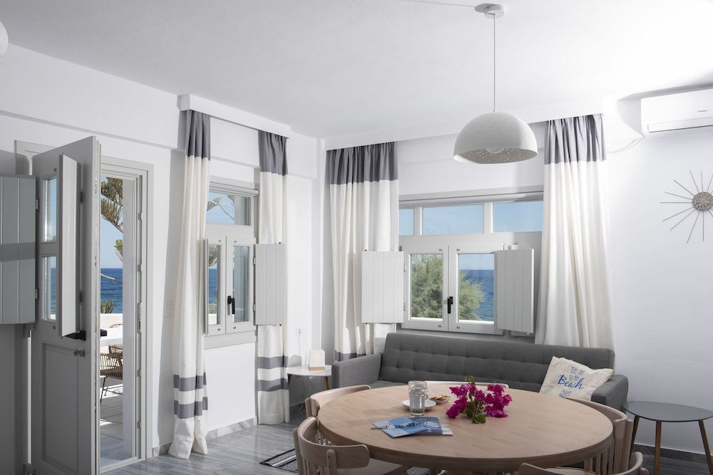 - Appartement superior (APM, ca. 45 m²) airconditioning, minikoelkast, espressomachine koffie-/theezetapparaat, tv, wifi (incl.), telefoon. Douche, toilet. BK. Zeezicht. Max. 4V