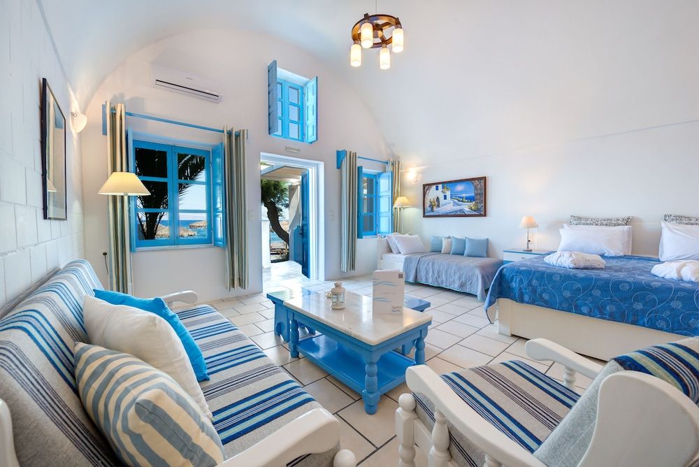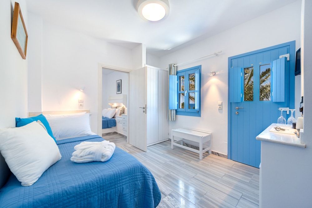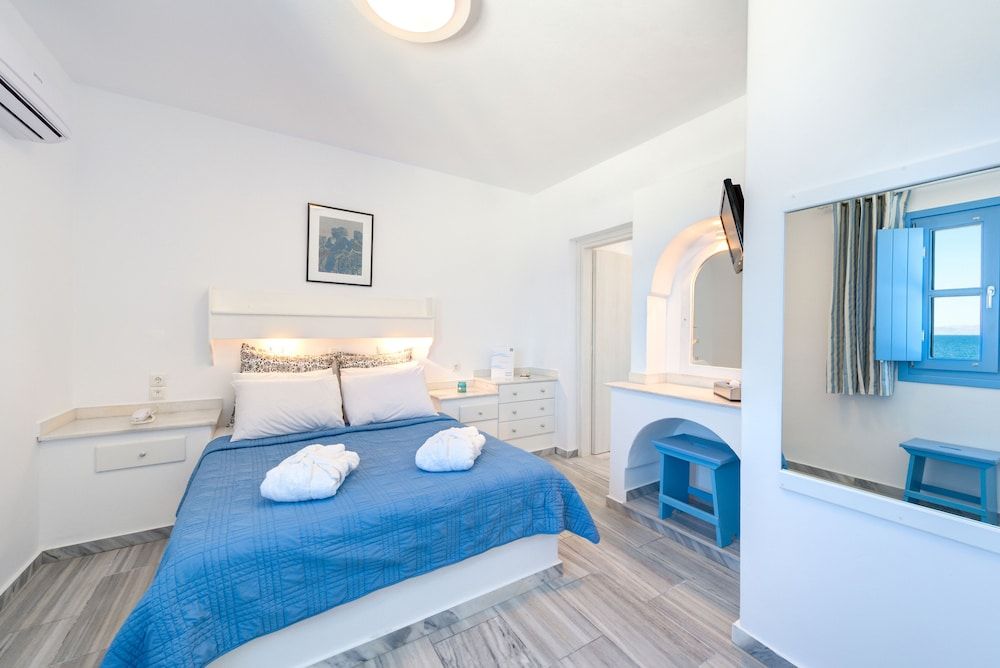 - Appartement superior (APC, ca. 70 m²) 2 slaapkamers, airconditioning, minikoelkast, espressomachine, koffie-/theezetapparaat, tv, wifi (incl.), telefoon. Douche, toilet. BK. Zeezicht. Max. 5V