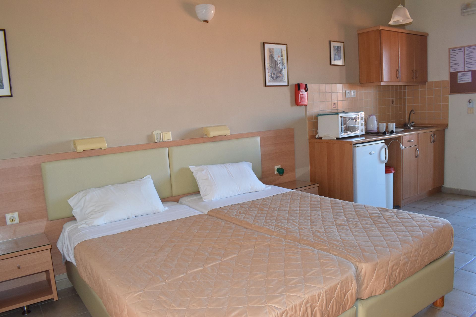 Algemene beschrijving:Het strandhotel Sunrise Apartments bevindt zich op ca. 45 km van Corfu Town (Kavos ongeveer 1,8 km). Het dichtstbijzijnde strand, een zandstrand, bevindt zich direct bij het hotel. In de omgeving van het Sunrise Apartments bereikt u verschillene bars en restaurants (500 m), een supermarkt (500 m) en een disco (2 km). Andere uitgaansmogelijkheden zoals een bioscoop en een theater bevinden zich op ongeveer 42 km afstand. De volgende bezienswaardigheden zijn bereikbaar vanaf het hotel: Corfu Old Town (ca. 45 km). Een bushalte (ca. 150 m) zorgt voor mobiliteit op vakantie. Voor medische zorg in geval van nood vindt u een ziekenhuis na ongeveer 50 km. De luchthaven (CFU) is ongeveer 42 km van het hotel vandaan. Faciliteiten:Dit één verdieping tellende hotel bestaat uit een hoofdgebouw en een bijgebouw en beschikt over in totaal 11 kamers. Daarnaast beschikt het hotel ook over een receptie (check in vanaf 15:00 uur, uitchecken tot 11:00 uur), een kluisje (tegen betaling), een parkeerplaats (gratis) evenals een wisselkantoor. Het gastronomisch gedeelte omvat een snackbar. De hotelbar biedt gasten verfrissende drankjes in een gezellige atmosfeer. De hotelgasten kunnen gratis gebruik maken van Wifi. Schoonmaak inclusief. Zwembad:Buiten bevindt zich een zoetwater zwembad. Hier zijn ligstoelen en parasols gratis beschikbaar. Verfrissende drankjes kunnen direct aan de zwembadbar worden genomen. Verzorging:Continentaal ontbijt (09:00 – 12:00 uur). Sport/Activiteiten:Op ongeveer 2 km afstand worden verschillende watersporten aangeboden (deels door lokale aanbieders en tegen betaling). Aanvullende informatie:Voor bepaalde faciliteiten, voorzieningen of activiteiten kunnen extra kosten in rekening worden gebracht. Sommige diensten zijn afhankelijk van de plaatselijke klimatologische omstandigheden en van het seizoen. Het hotelpersoneel spreekt Engels. Standard Appartement (TuinZicht):De in de typische stijl van het land ingerichte kamers (50 m²) zijn allemaal voorzien van 2 eenpersoonsbedden, extra bed, tegelvloer, kitchenette, balkon of terras, waterverhitter (gratis), internet (gratis), kluisje (gratis) en flatscreen sat-tv, individueel verstelbare airco. Badkamer met douche. Handdoeken worden 2x per week verschoond. Standard Studio (TuinZicht):De in de typische stijl van het land ingerichte kamers (25 m²) zijn allemaal voorzien van 2 eenpersoonsbedden, extra bed, tegelvloer, kitchenette, balkon of terras, waterverhitter (gratis), internet (gratis), kluisje (gratis) en flatscreen sat-tv, individueel verstelbare airco. Badkamer met douche. Handdoeken worden 2x per week verschoond. Standard Studio (TuinZicht, GeenTerugbetaling):De in de typische stijl van het land ingerichte kamers (25 m²) zijn allemaal voorzien van 2 eenpersoonsbedden, extra bed, tegelvloer, kitchenette, balkon of terras, waterverhitter (gratis), internet (gratis), kluisje (gratis) en flatscreen sat-tv, individueel verstelbare airco. Badkamer met douche. Handdoeken worden 2x per week verschoond. Algemene beschrijving:Het strandhotel Sunrise Apartments bevindt zich op ca. 45 km van Corfu Town (Kavos ongeveer 1,8 km). Het dichtstbijzijnde strand, een zandstrand, bevindt zich direct bij het hotel. In de omgeving van het Sunrise Apartments bereikt u verschillene bars en restaurants (500 m), een supermarkt (500 m) en een disco (2 km). Andere uitgaansmogelijkheden zoals een bioscoop en een theater bevinden zich op ongeveer 42 km afstand. De volgende bezienswaardigheden zijn bereikbaar vanaf het hotel: Corfu Old Town (ca. 45 km). Een bushalte (ca. 150 m) zorgt voor mobiliteit op vakantie. Voor medische zorg in geval van nood vindt u een ziekenhuis na ongeveer 50 km. De luchthaven (CFU) is ongeveer 42 km van het hotel vandaan. Faciliteiten:Dit één verdieping tellende hotel bestaat uit een hoofdgebouw en een bijgebouw en beschikt over in totaal 11 kamers. Daarnaast beschikt het hotel ook over een receptie (check in vanaf 15:00 uur, uitchecken tot 11:00 uur), een kluisje (tegen betaling), een parkeerplaats (gratis) evenals een wisselkantoor. Het gastronomisch gedeelte omvat een snackbar. De hotelbar biedt gasten verfrissende drankjes in een gezellige atmosfeer. De hotelgasten kunnen gratis gebruik maken van Wifi. Schoonmaak inclusief. Zwembad:Buiten bevindt zich een zoetwater zwembad. Hier zijn ligstoelen en parasols gratis beschikbaar. Verfrissende drankjes kunnen direct aan de zwembadbar worden genomen. Verzorging:Continentaal ontbijt (09:00 – 12:00 uur). Sport/Activiteiten:Op ongeveer 2 km afstand worden verschillende watersporten aangeboden (deels door lokale aanbieders en tegen betaling). Aanvullende informatie:Voor bepaalde faciliteiten, voorzieningen of activiteiten kunnen extra kosten in rekening worden gebracht. Sommige diensten zijn afhankelijk van de plaatselijke klimatologische omstandigheden en van het seizoen. Het hotelpersoneel spreekt Engels. Standard Appartement (TuinZicht):De in de typische stijl van het land ingerichte kamers (50 m²) zijn allemaal voorzien van 2 eenpersoonsbedden, extra bed, tegelvloer, kitchenette, balkon of terras, waterverhitter (gratis), internet (gratis), kluisje (gratis) en flatscreen sat-tv, individueel verstelbare airco. Badkamer met douche. Handdoeken worden 2x per week verschoond. Standard Studio (TuinZicht):De in de typische stijl van het land ingerichte kamers (25 m²) zijn allemaal voorzien van 2 eenpersoonsbedden, extra bed, tegelvloer, kitchenette, balkon of terras, waterverhitter (gratis), internet (gratis), kluisje (gratis) en flatscreen sat-tv, individueel verstelbare airco. Badkamer met douche. Handdoeken worden 2x per week verschoond. Standard Studio (TuinZicht, GeenTerugbetaling):De in de typische stijl van het land ingerichte kamers (25 m²) zijn allemaal voorzien van 2 eenpersoonsbedden, extra bed, tegelvloer, kitchenette, balkon of terras, waterverhitter (gratis), internet (gratis), kluisje (gratis) en flatscreen sat-tv, individueel verstelbare airco. B