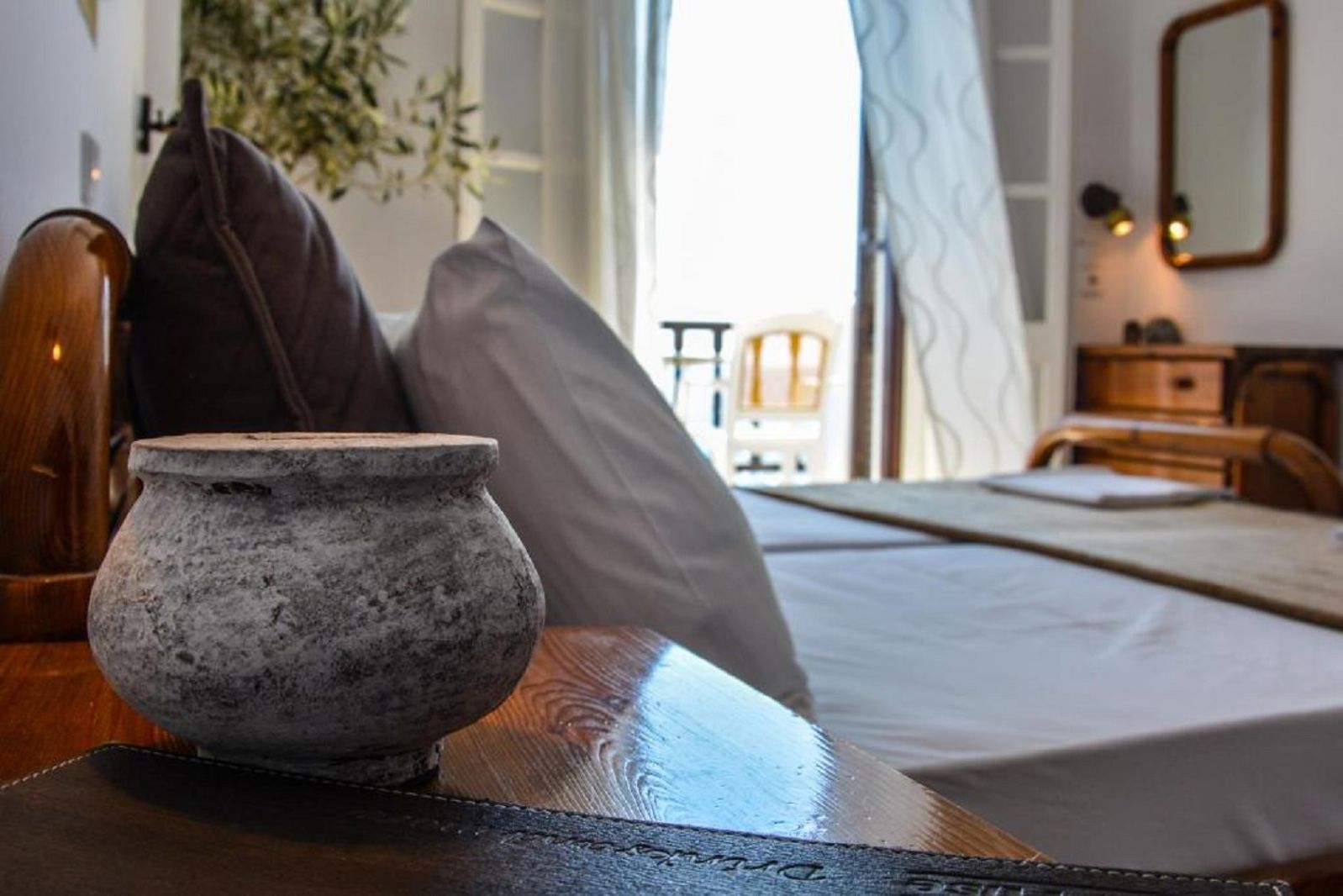 - Tweepersoonskamer (DZ, ca. 20 m²), eenvoudig uitgerust, met airconditioning (tegen betaling), koelkast Douche, toilet. Balkon. Max. 2V