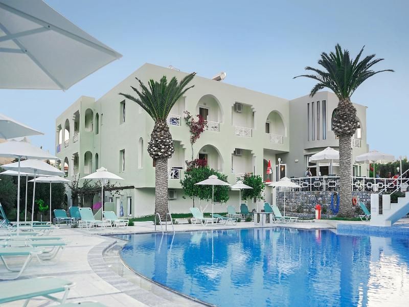 Het appartementenhotel bevindt zich in Georgioupoli, op circa 1 km van het strand, op een rustige plek. Het aparthotel beschikt over 11 appartementen en 47 studio’s en over een lift. Het vriendelijke personeel aan de receptie is graag bij alle vragen behulpzaam. De gasten van het hotel kunnen van een bagagedepot, een kluis, een autoverhuur, een medische dienst, een fax, een rookmelder en een lounge gebruikmaken. Wi-Fi is kosteloos aanwezig. De tourdesk biedt ondersteuning bij het boeken van excursies. Op het terrein van het verblijf bevinden zich een mooie tuin en een fraaie speelplaats. De gasten die met de auto komen, kunnen in een garage (tegen toeslag) of op de parkeerplaats (kosteloos) parkeren. De omgeving kan door de aanwezigheid van de fietsverhuur ook op de fiets worden verkend. Airconditioning (tegen toeslag) en een individueel regelbare verwarming zorgen voor een aangename luchtcirculatie in de kamers. De gasten kunnen vanaf het balkon of het terras van het uitzicht op de bergen genieten. Kinderbedjes worden op aanvraag tegen betaling ter beschikking gesteld. Hun waardevolle spullen kunnen de gasten tegen betaling in een kluis opbergen. Een kitchenette met een mini-koelkast en een fornuis is eveneens standaard aanwezig. Voor vakantiecomfort zorgen een telefoon met directe buitenlijn, satelliettelevisie en Wi-Fi (kosteloos). In de badkamers vinden de gasten een föhn. Voor ouders met kinderen zijn gezinskamers beschikbaar. Voor afwisselende recreatie en vrijetijdsbesteding staan de sport- en amusementsmogelijkheden van het aparthotel ter beschikking. Terwijl de volwassenen in het openluchtzwembad een paar baantjes trekken, komen de kinderen in het pierenbadje aan hun trekken. Op het zonneterras zijn ligstoelen en parasols beschikbaar. In de (snack-) bar worden verfrissende drankjes aangeboden. Copyright GIATA 2004 – 2025. Multilingual, powered by www.giata.com for client no. 125551 Het horecagedeelte is uitgerust met een restaurant en een bar. Verfrissende drankjes aan de strandbar staan garant voor feelgood momenten. Het hotel biedt een overnachting incl. ontbijt en halfpension als boekingsmogelijkheid op het gebied van eten en drinken aan. Iedere dag worden een continentaal ontbijtbuffet en een veelzijdig avondbuffet geserveerd. Bovendien staan ook dieetgerechten, vegetarische gerechten, kindermenu’s en veganistische maaltijden op de menukaart. Het verblijf beschikt over een assortiment alcoholische en alcoholvrije dranken.