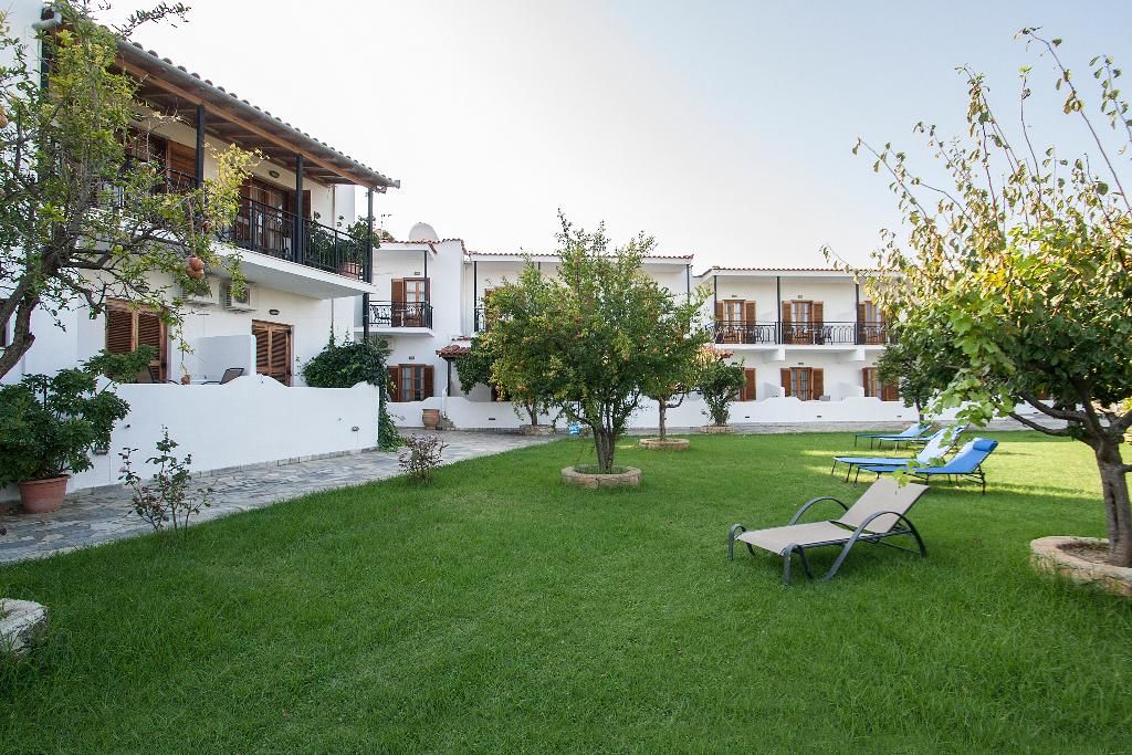 Dit familiehotel, omgeven door weelderige tuinen en prachtige palmbomen, ligt op een paar meter afstand van het strand van Achladies. Het hotel ligt op 10 minuten van het hart van Skiathos-stad met tal van attracties en een bruisend nachtleven, perfect bereikbaar met watertaxi's. In de directe omgeving vinden gasten een verscheidenheid aan bars, restaurants en twee supermarkten. Dit is de perfecte plek om te verblijven voor een vredige accommodatie en de Griekse ervaring te beleven.